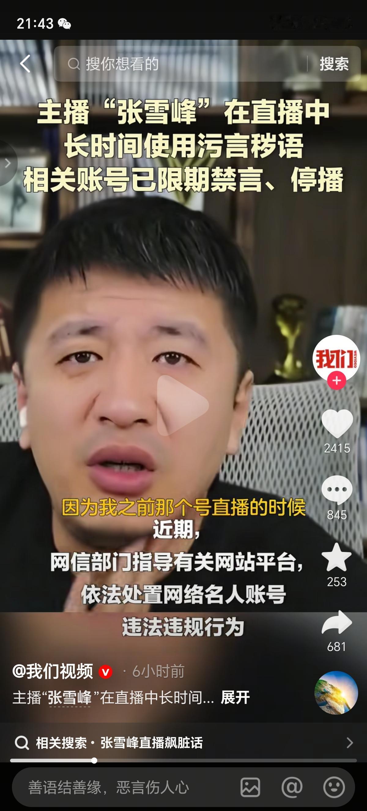 这是找不到别的事情来说张雪峰了吗?不就是爆几句粗口吗?我听张雪峰直播好长时间了,一直都挺好的,回答问题也很让人满意。 人非圣贤,孰能无过。爆几句粗口怎么了,就非得鸡蛋里挑骨头吗?从来没觉得他哪里不好,明明张雪峰是个很接地气的人,平时直播回答问题也有耐心,很为普通老百姓考虑问题。 张雪峰明明是一个很正能量的人,是一个敢说实话的人,为啥总有人见不得别人好。非得没事挑刺,非得平白说人家不好,这是找不到毛病硬从鸡蛋里找骨头吧? 张雪峰让我们这些普通老百姓知道了很多报考方面的知识,谁家有小孩的不想多了解了解真实的报考知识?我看直播间里提问的人得到答案后都挺满意的,我这样旁听的人听了也挺满意的。 啥叫污言秽语,不就是爆粗口了吗,谁这一辈子不爆几句粗口了?不觉得有啥值得小题大做的。