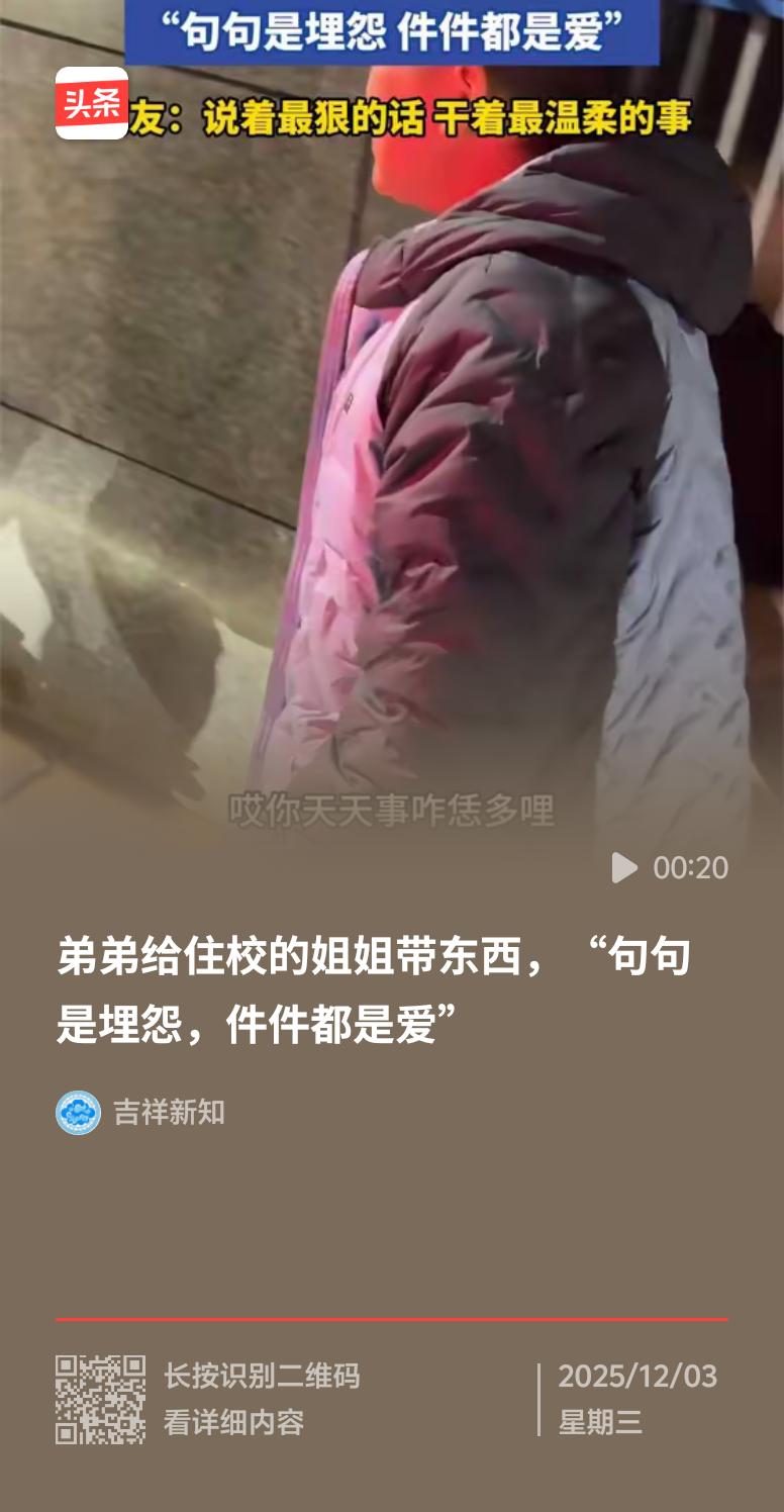 最近教育榜上有个超暖心的事儿刷屏了。住校的姐姐收到弟弟的包裹,里面虽没昂贵礼物,却满是纯粹的牵挂。姐姐难得回家,弟弟提前好几天就开始准备。手工零食、暖手宝、复习笔记、厚围巾,每一样都亲手挑选、仔细打包。他还记得姐姐说宿舍灯光暗,特意准备了护眼小台灯,还塞了张画着姐弟俩的涂鸦卡片,写着“姐姐要照顾好自己”。姐姐拆开包裹时眼眶发红,这些物件全是弟弟攒的心意。手足情就藏在细节里,这简单纯粹的爱,就是成长路上最珍贵的礼物。