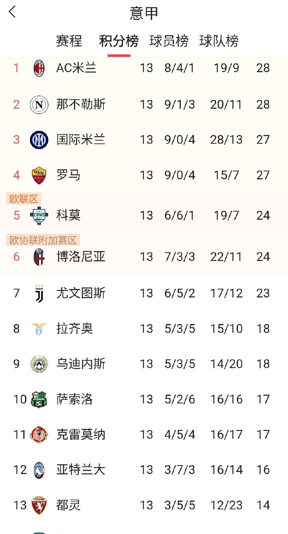 意甲真是越来越保守,联赛打了13轮,一共打入302粒进球,平均每支球队单场进球数1.16球。只有国米13场比赛打入28球,场均进球数超过2球。像排名第四的罗马才打入15球,场均1.15球。联赛射手榜排名第一的是劳塔罗和博洛尼亚的奥尔索里尼,都是6球。对比5大联赛着实寒酸。目前英超同样赛了13轮,最佳射手是哈兰德的14球。德甲踢了12轮,最佳射手是凯恩,共进14球。西甲踢了14轮,最佳射手是姆巴佩,姆总也打入14球。水平略逊一些的法甲也踢了14轮,最佳射手是马赛的格林伍德。以意甲这种防守至少得风格,怕是哈兰德、凯恩和姆巴佩到此联赛,进球数据也会大大下降。