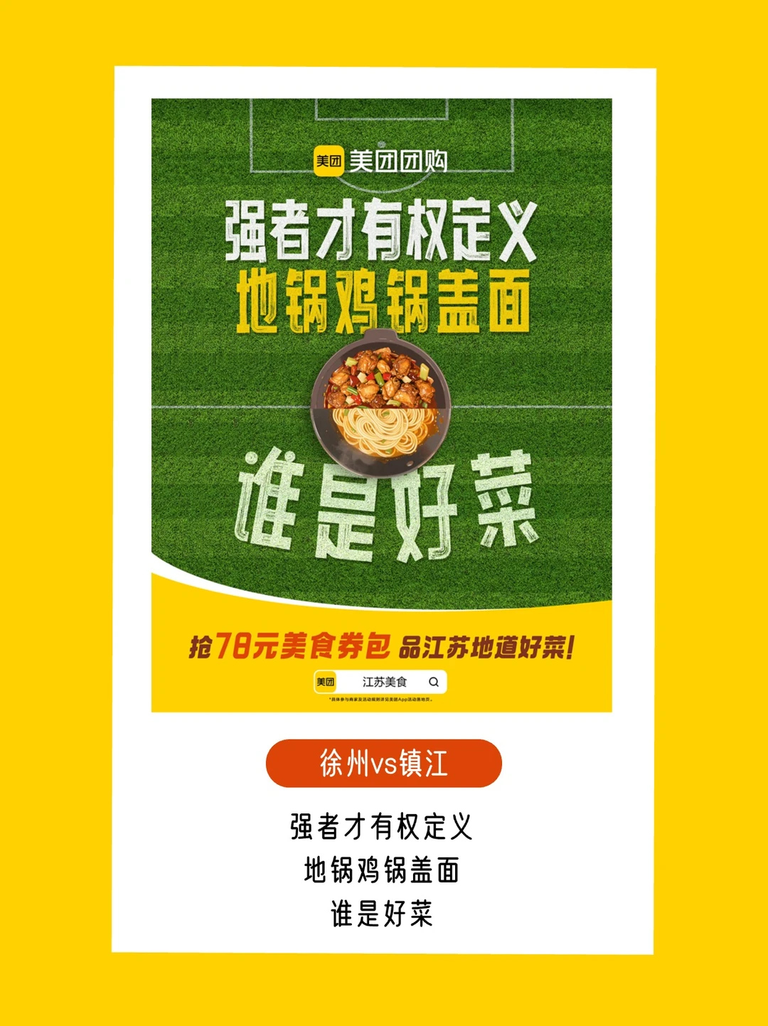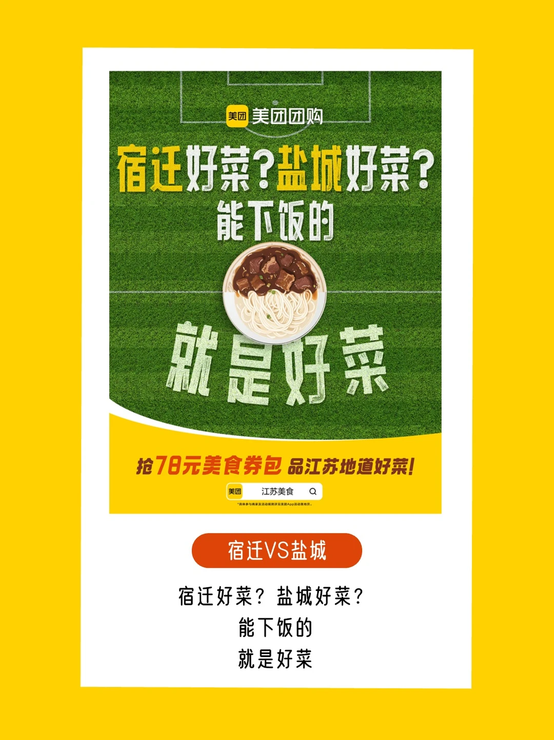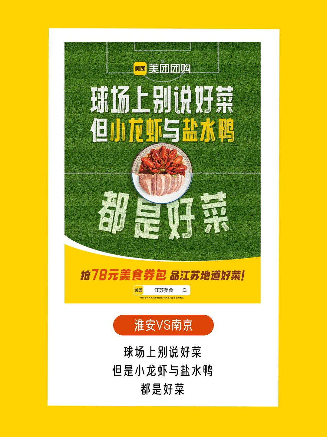 苏超联赛自带话题buff,谁规定“好菜”只能骂选手?美团团购反手一个「场景偷换」:球场上喊“好菜”是吐槽,饭桌上吃“好菜”是江苏美食的排面![得意R]