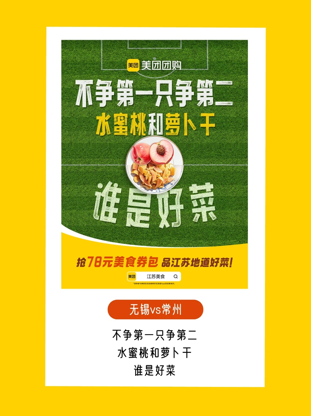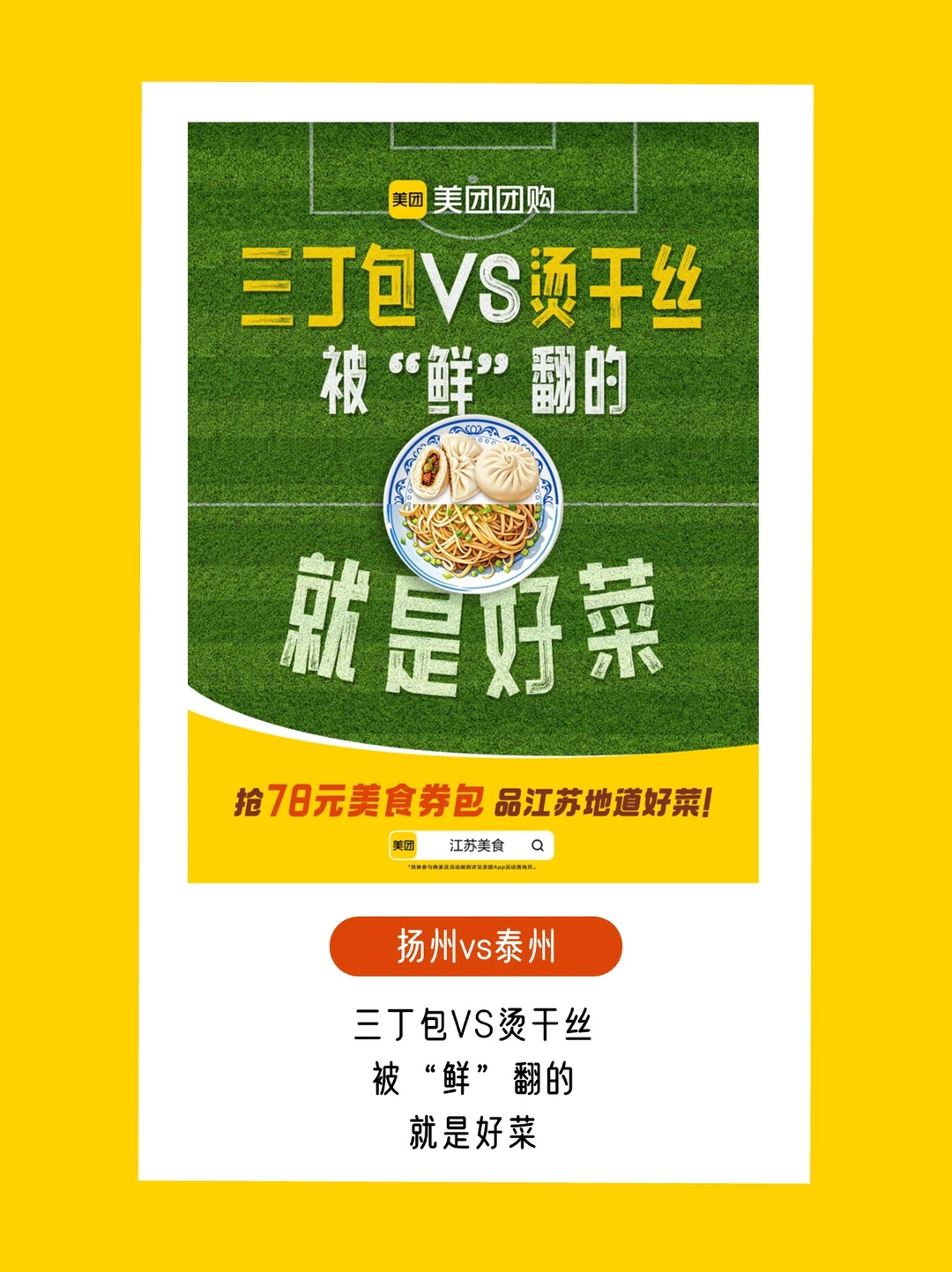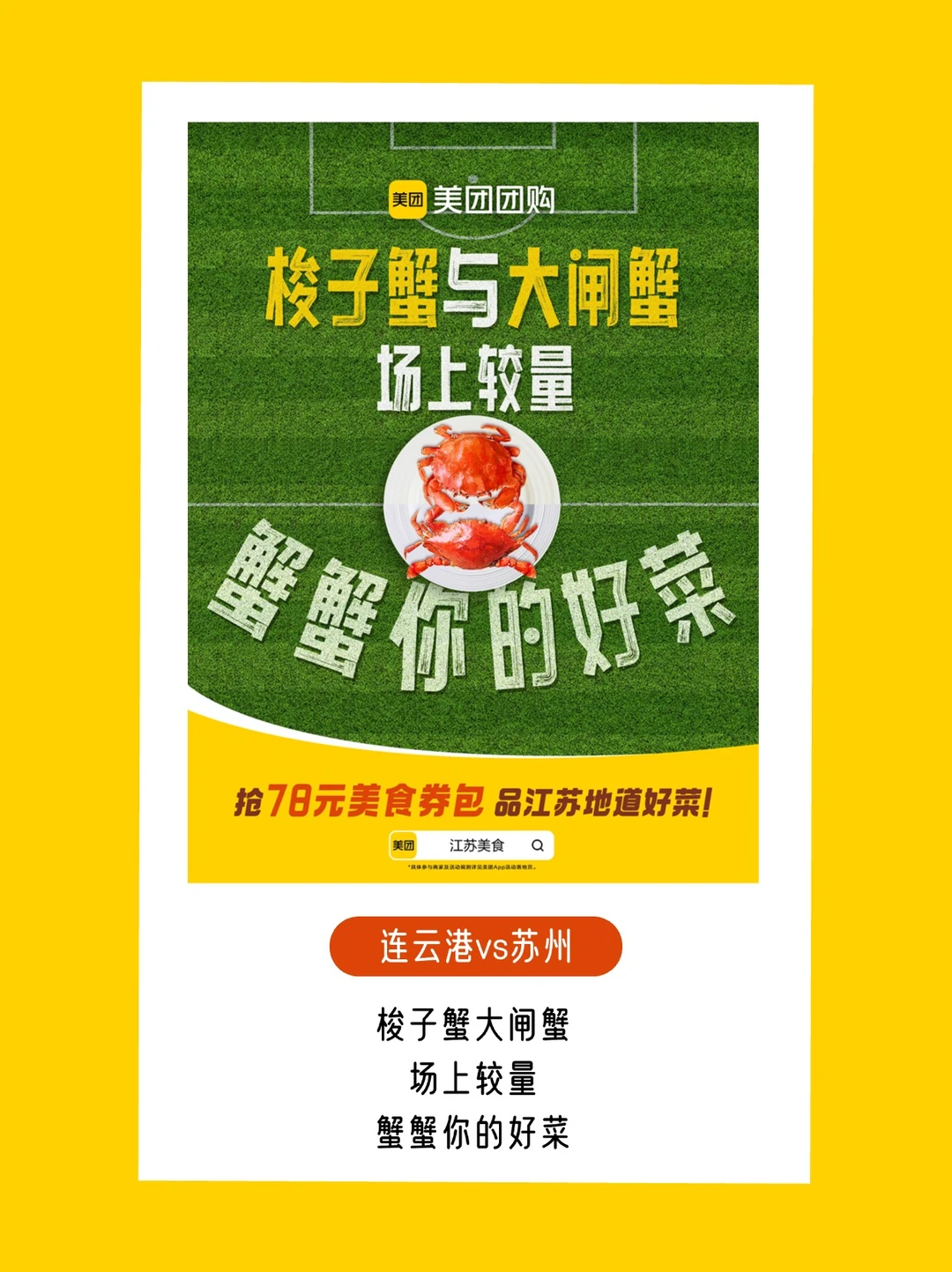 苏超联赛自带话题buff,谁规定“好菜”只能骂选手?美团团购反手一个「场景偷换」:球场上喊“好菜”是吐槽,饭桌上吃“好菜”是江苏美食的排面![得意R]