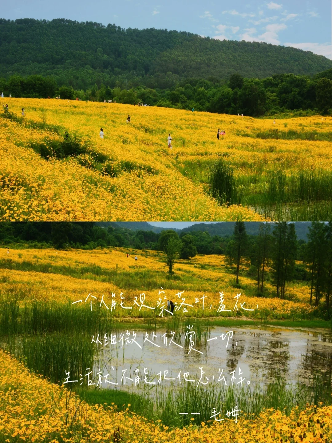 [黄金薯R][黄金薯R]最近这片花海太火了,看到图片太惊艳昨天就去了,虽然是阴天还是挺美的,一大片一大片的像童话一样 [黄金薯R]可以带一本书作为道具,服装以浅色为主,白色黄色比较搭,可以拍摄大场景和近景结合 [再见R]地点‖光谷政务中心附近 中心城西苑公园对面(建议开车自驾前往,坐地铁11号线也可以到) [再见R]去的时候差点迷失,还好问西苑公园的管理人员问到了,西苑的景色也很美,可以拍照的地方很多有好多花武汉拍照📸武汉拍照圣地‖武汉花海‖武汉金盏菊‖武汉宝藏拍照地‖武汉旅行‖武汉旅游‖武汉出游