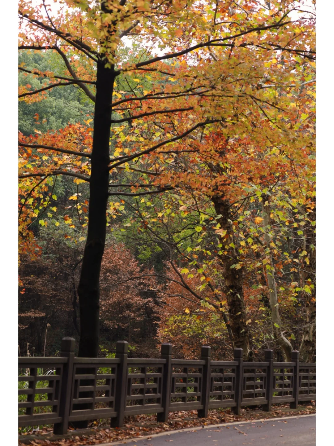 ✔️这里一片秋色,地上落满了梧桐、枫香叶,还有森林栈道很适合徒步