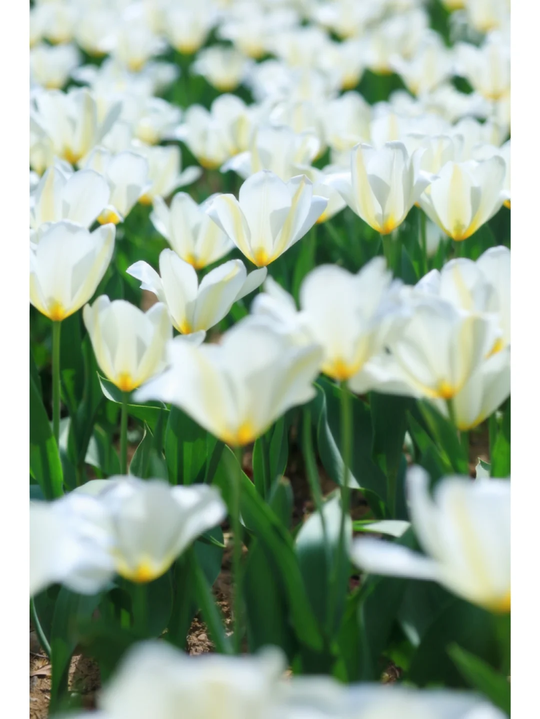 ✔️这里的郁金香颜色统一,成片成片的很密集,还有绿草坪很适合拍照野餐