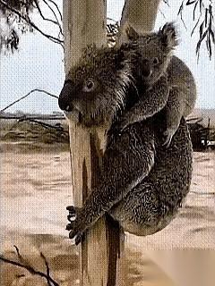 我真的看呆了。 整个世界都被黄泥汤淹了,就剩下一棵光秃秃的树。 树上,是它和它的孩子。 小家伙估计吓坏了,也可能什么都不知道,反正就是死死地扒着妈妈的后背,把脑袋埋起来。它的整个世界,此刻就只有妈妈后背那么大。 然后,人来了。 开着船,递过来一根长长的杆子。 我一直在想,那一刻,考拉妈妈在想什么? 它哪儿懂什么救援队,什么叫洪水啊。在它的认知里,可能就是天塌了,家没了,眼前这些陌生的生物,是敌是友,根本不知道。 可它没有一丝犹豫。 就那么顺着杆子,一点点,带着背上的全部希望,爬了过去。 它赌了一把。 赌这群“怪物”是来救它的,不是来害它的。 赌赢了,孩子就能活。 那一刻,它不是什么蠢萌的吉祥物,它是一个母亲。 为母则刚这句话,真不是只说给人类听的。