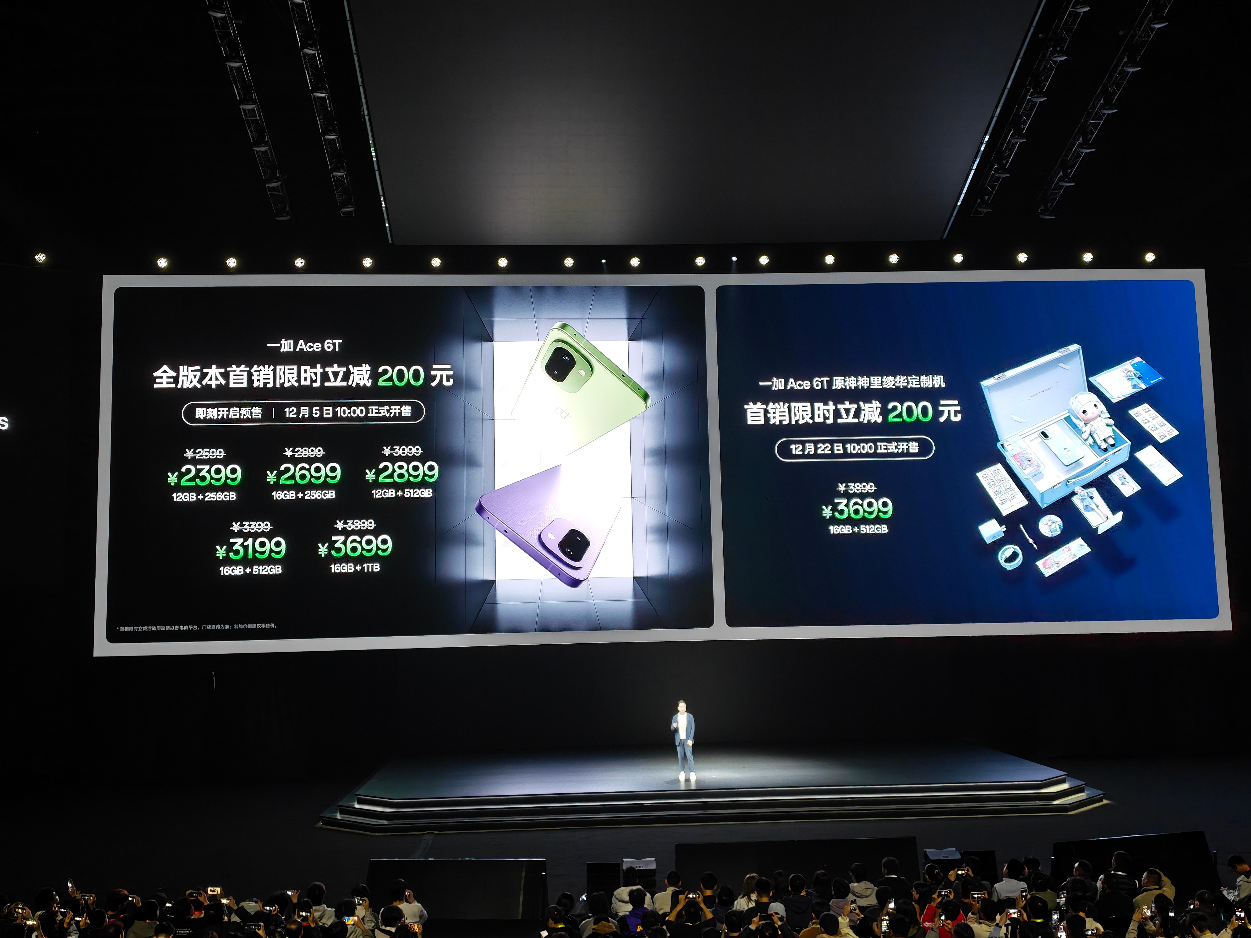 今晚一加Ace6T正式发布12+256GB:2399元 16+256GB:2699元12+512GB:2899元 16+512GB:3199元16GB+1TB:3699元 一加 Ace6T 原神神里绫华定制机礼盒~16+512GB 首发价 3699 元