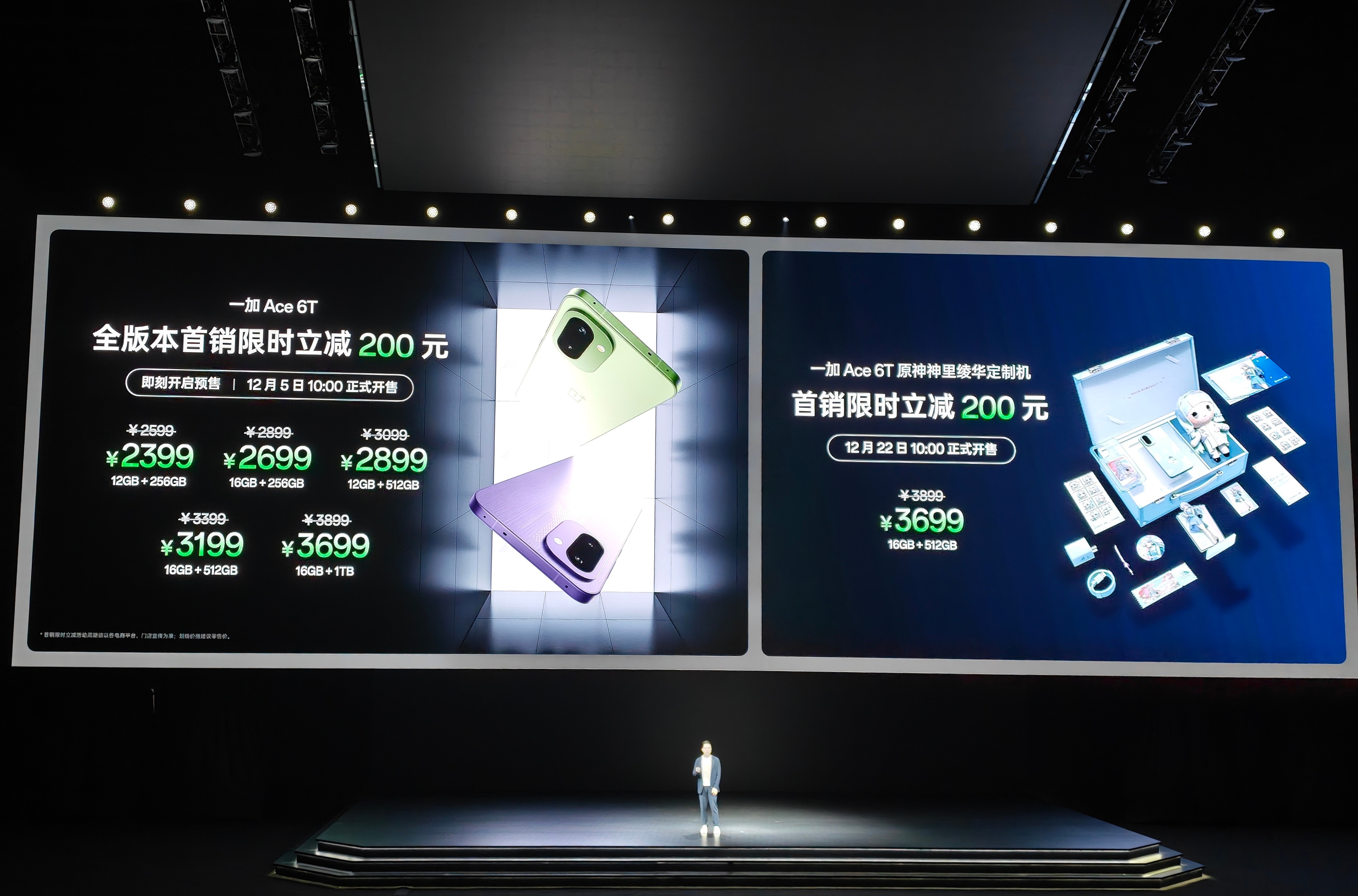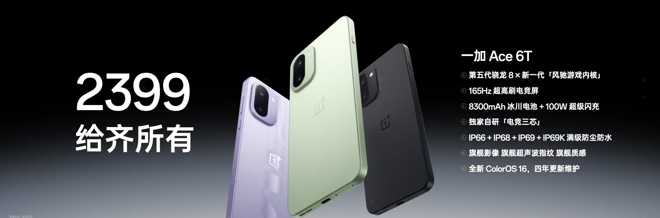一加 Ace 6T价格公布:2399元起。12+256G 2399元,16+256G 2699元,12+512G 2899元,16+512G 3199元,16+1T 3699元。这价格,香不香?