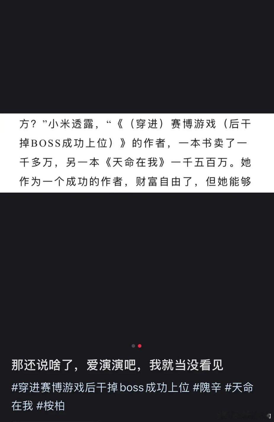 著名女强文、穿进赛博游戏干掉boss和天命在我两本书的版权卖了将近3000w