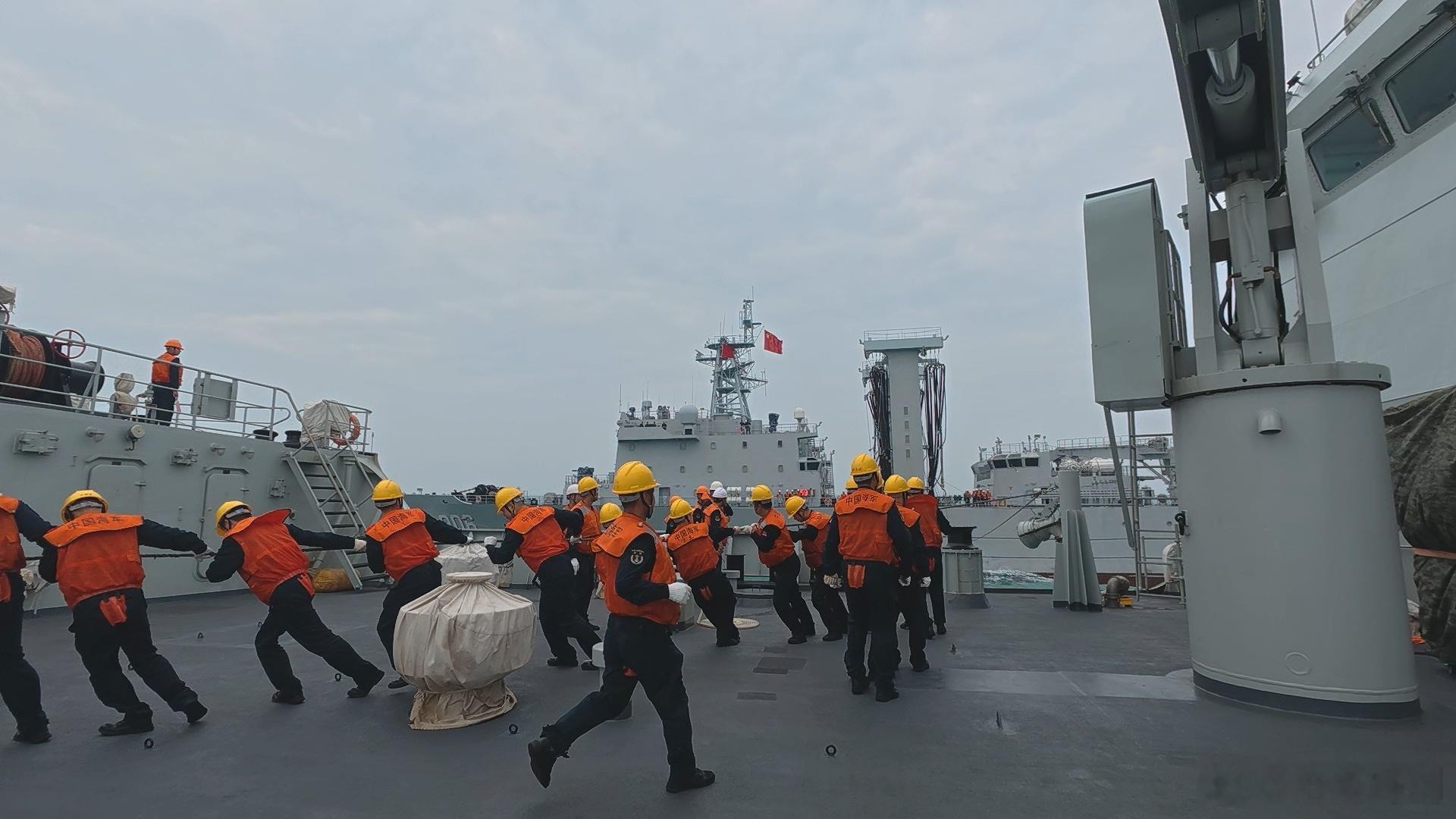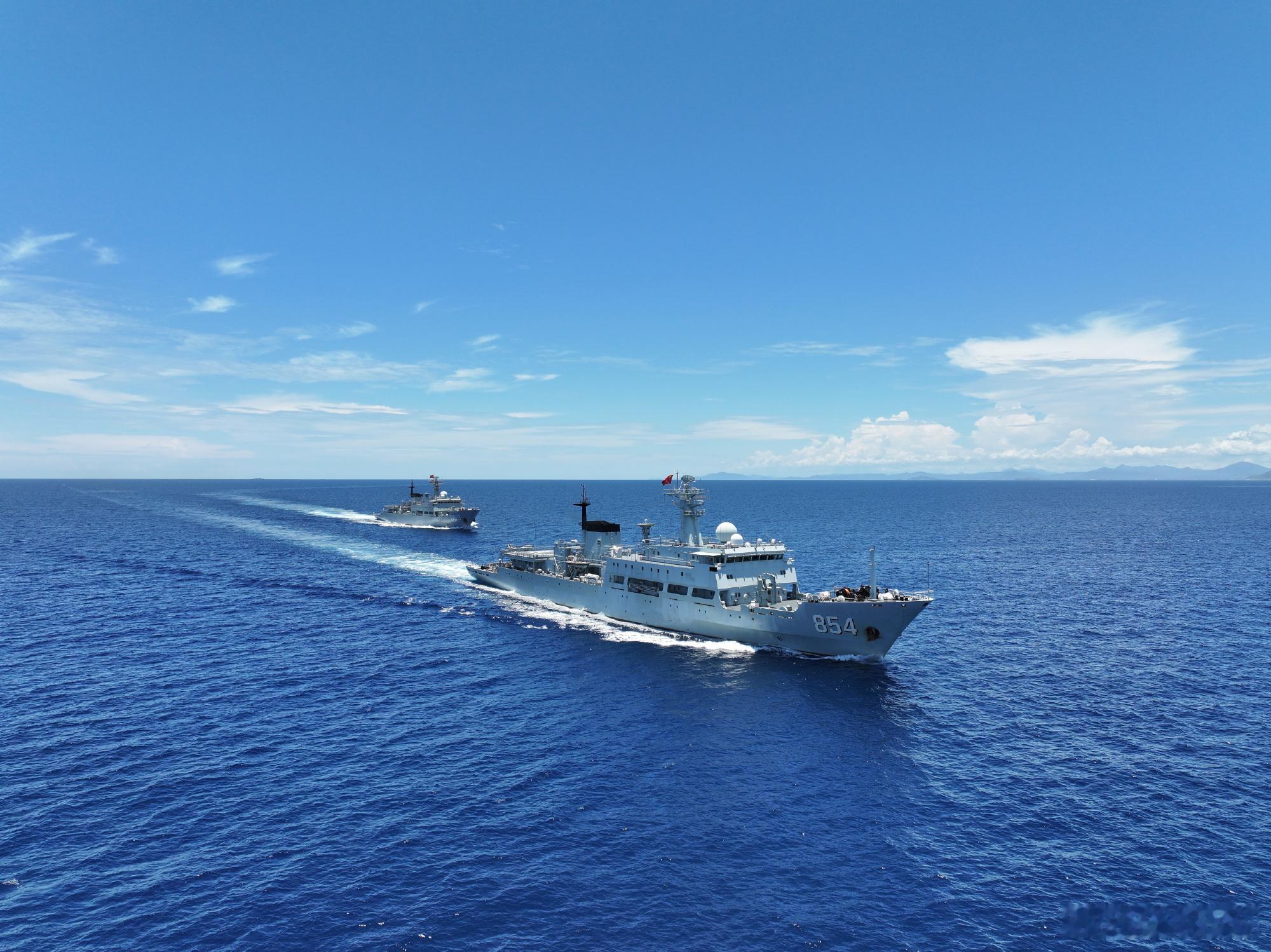 853詹天佑舰、854李四光舰出海训练。两舰都是910型水中兵器综合试验舰。