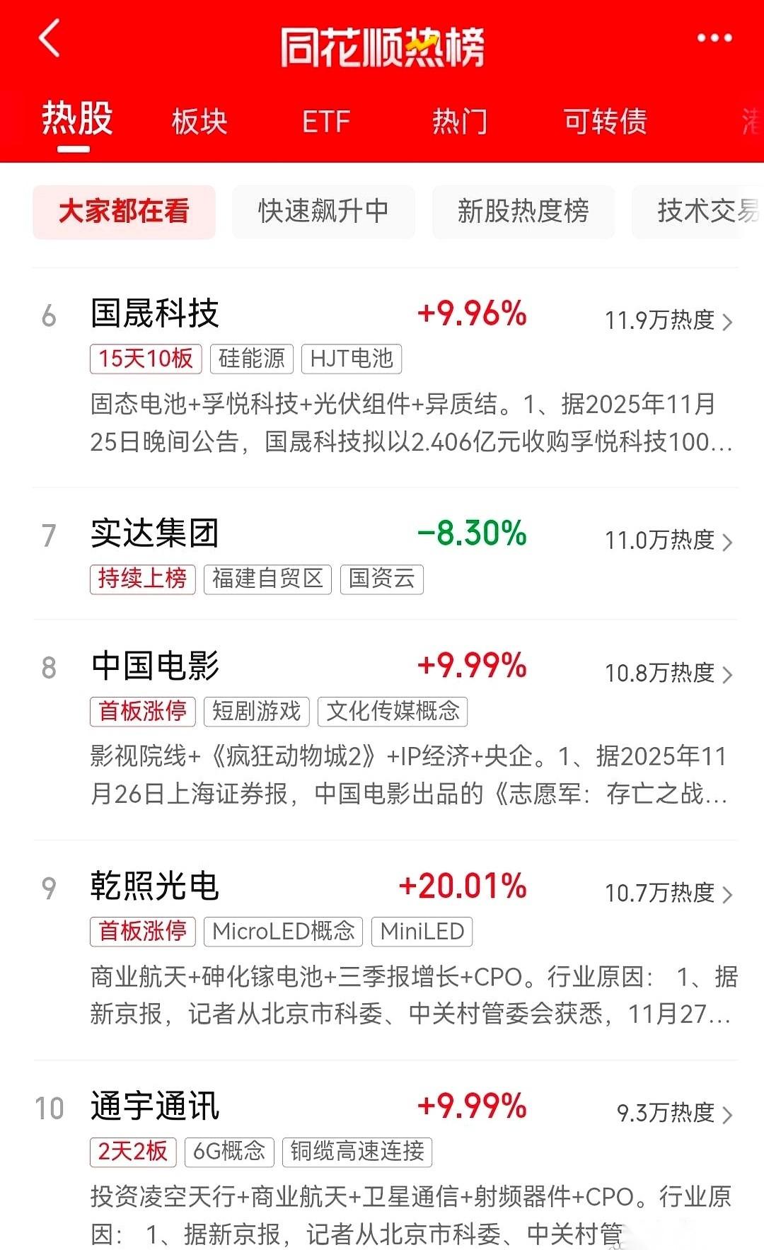 睡前刷到这个榜单,我一下就精神了。 你瞅瞅,这哪是冷冰冰的股票代码啊?这分明就是一锅烧开了的沸水,咕嘟咕嘟地冒着热气,全是人间烟火和对明天的野心。 一边,是航天发展、雷科防务。 这些硬邦邦的“国之重器”,我一个外行看不懂里面的门道,但我知道,这玩意儿关乎着咱们的腰杆子能不能挺直。 另一边呢?是峨眉山的雪,是中国电影的梦。 这是我们的小日子,是柴米油盐之外的诗和远方,是累了一天之后想找的那点安慰。 好家伙。 这里面有对着海峡的眺望,有追着6G未来的光,甚至还有田埂上轰鸣的农机…… 几千亿的真金白银,背后是无数个跟你我一样,或焦虑或兴奋的普通人。 这哪是在炒股啊。 这简直就是我们这个时代,一场最大规模的集体许愿。 每个人都把自己对未来的想象和期待,换成代码,“啪”的一下,投了进去。 有人在赌国运昌盛,有人在搏柴米无忧。 但说到底,谁又不是在赌一个更好的明天呢。