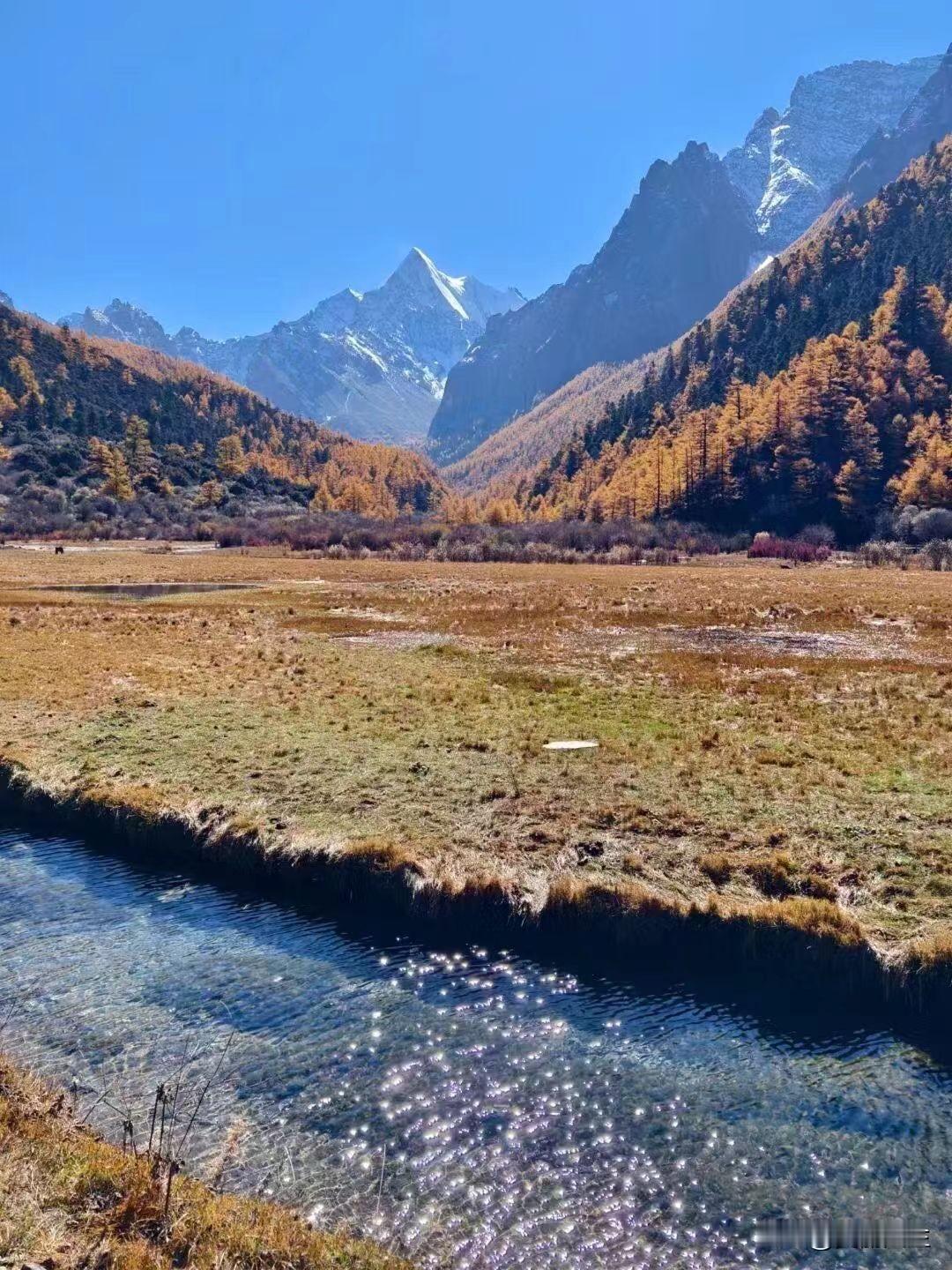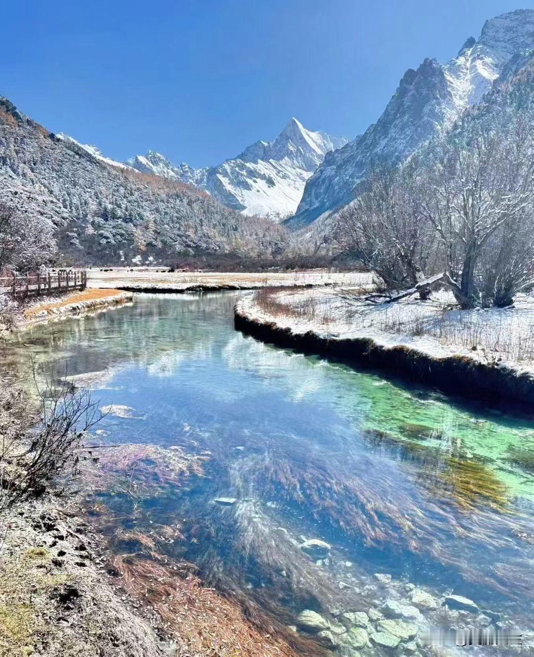 冬季的稻城亚丁❄️, 被上帝披上白色披肩 冬日的银装素裹将雪山🏔 与蓝天白云相应成趣💞 洁白的草原, 仿佛行走在一颗明珠之中[比心][比心]