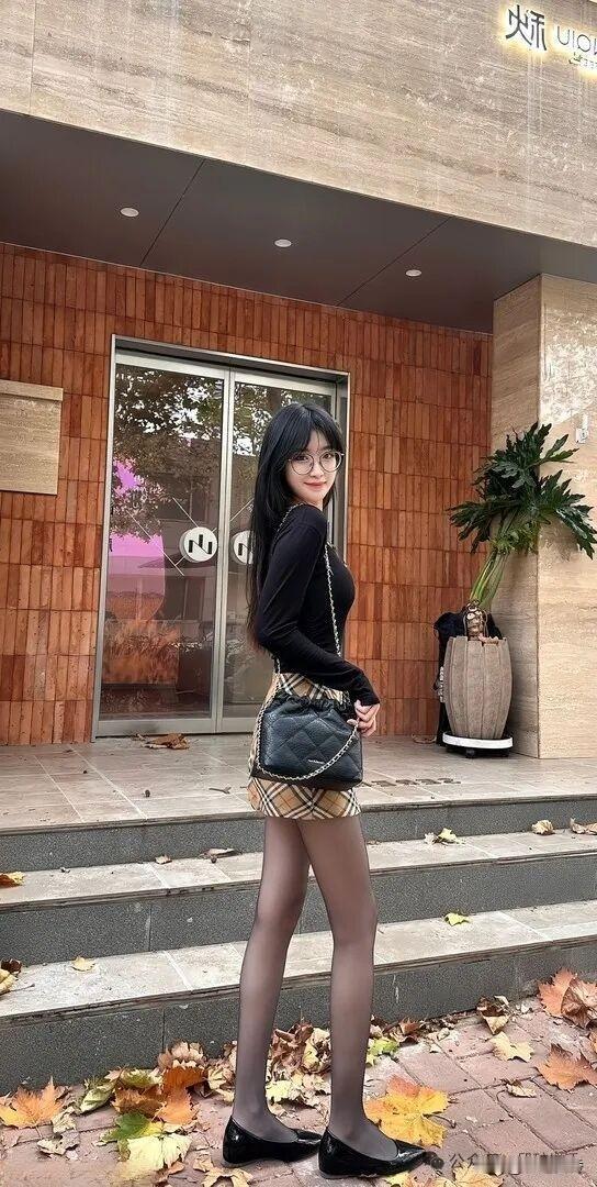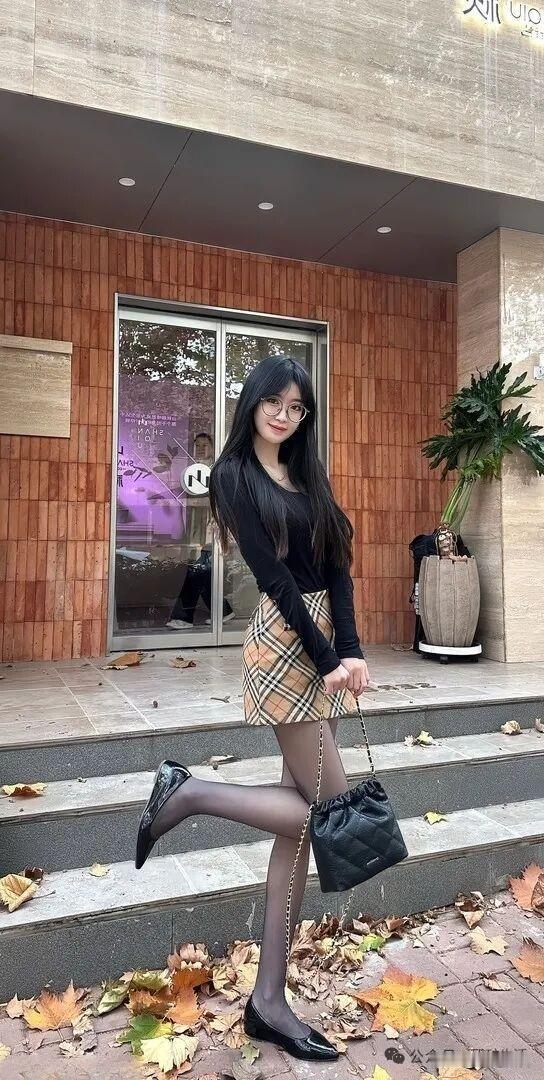 秋日穿搭指南:黑色长袖+格子短裙,优雅气质满满!女士们如何穿出优雅范? 做精致女人高跟必备不是吗?