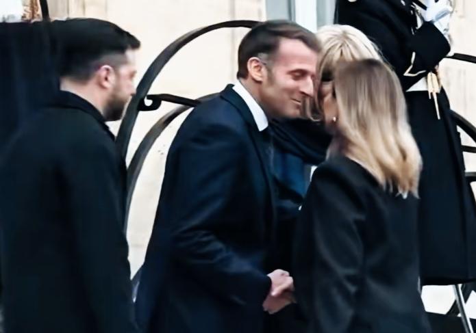 泽连斯基看着自己妻子和马克龙,内心在想什么呢? 泽连斯基貌似盯着看的很专注啊! 马克龙和泽连斯基妻子握个手,同时被两个人在盯着看! 马克龙脸上也没有了以前的笑意啊!