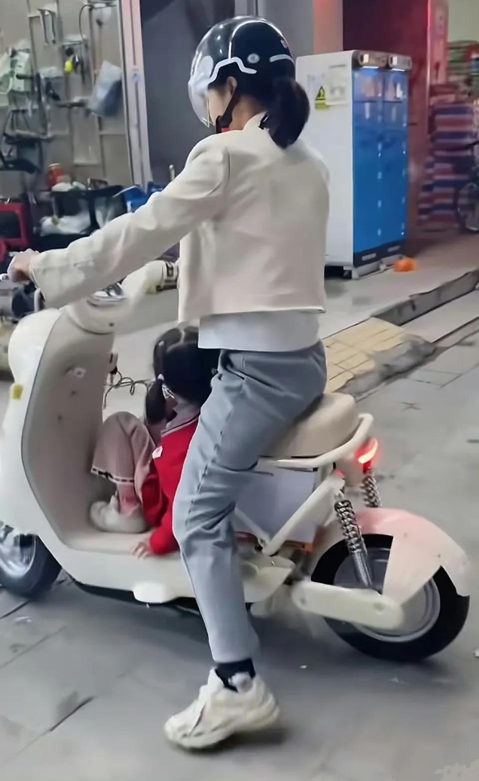 有网友找到了新国标电动车接娃买菜的办法,孩子蹲在前面,带麻袋+竹筐出门[捂脸]
