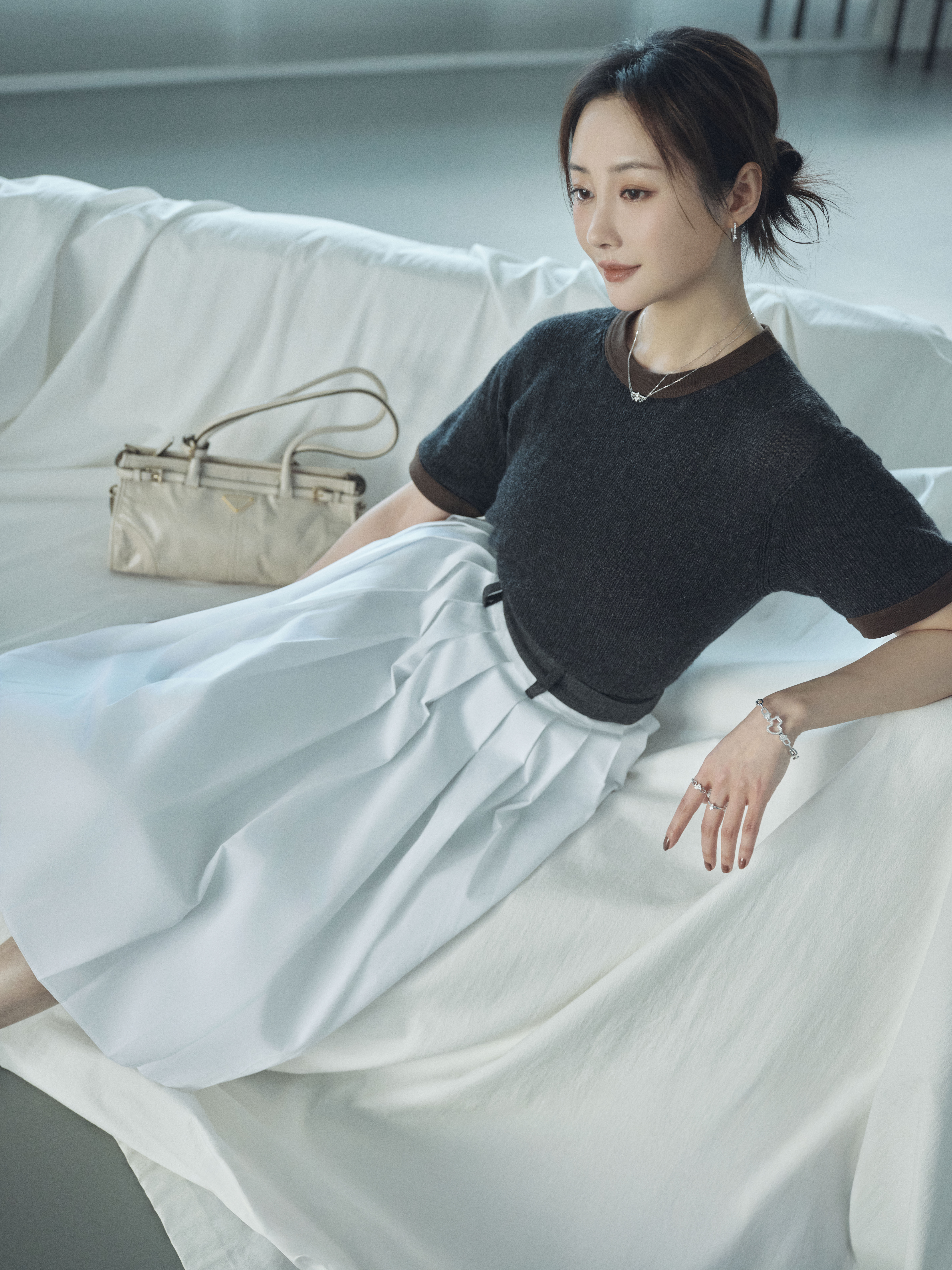 优雅粉裙搭配精致小包,都市女孩的时尚日常。