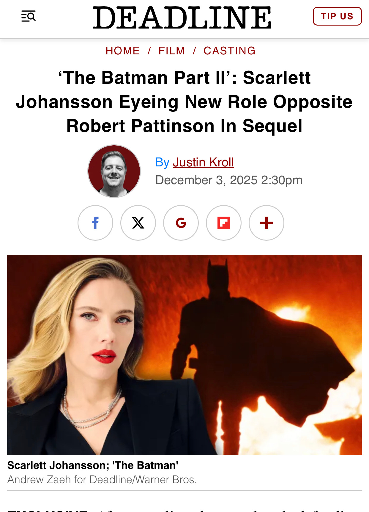 TNABO Deadline消息:斯佳丽·约翰逊正在进行最后协商,将在马特·里弗斯《蝙蝠侠2》中饰演神秘新角色