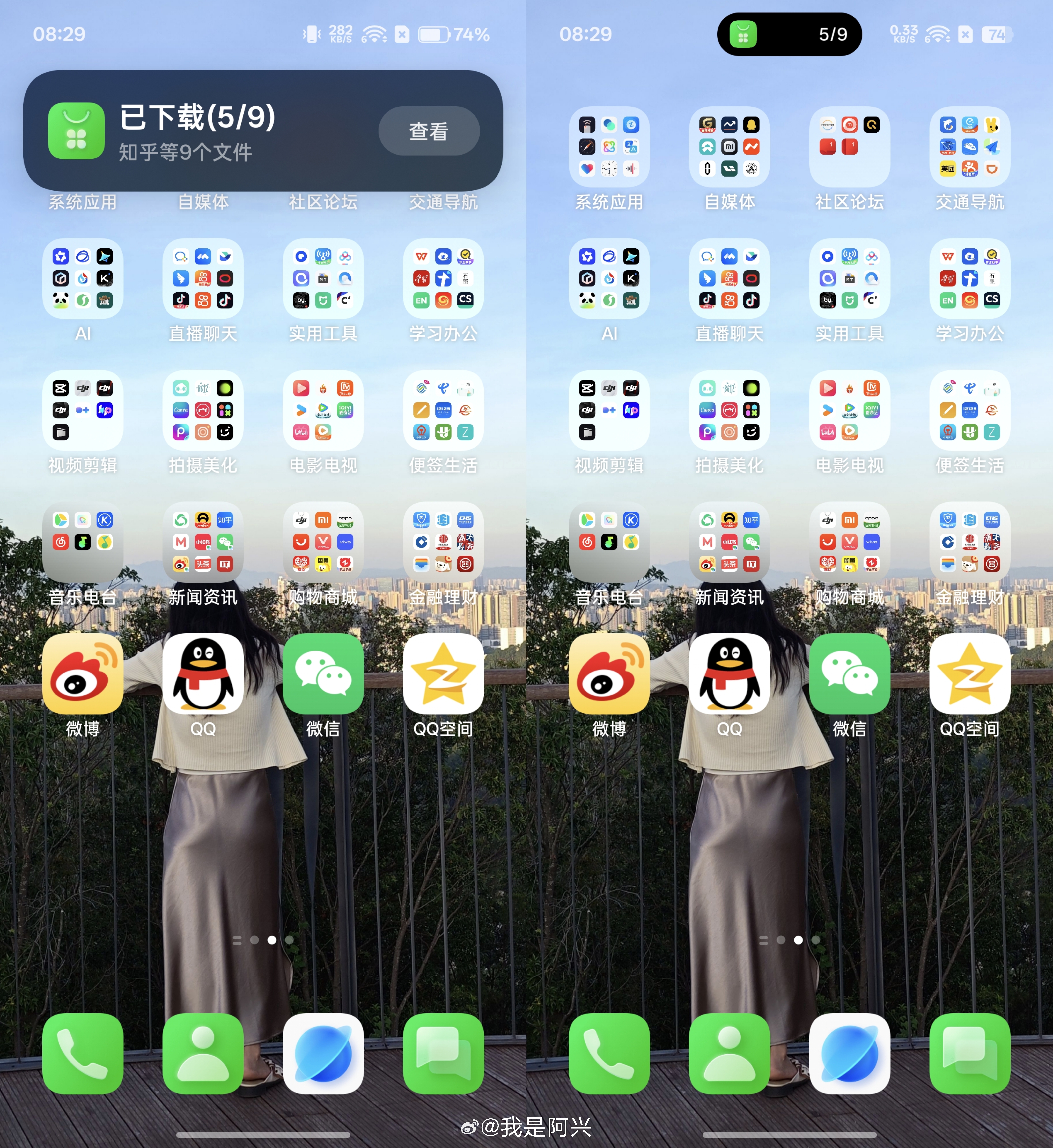 ColorOS 16 最新系统版本已支持在“灵动岛”上显示应用下载与安装状态。现在,ColorOS 上的许多信息几乎都不再需要进入对应APP查看,它们大多都能在“岛”上实时显示,让你在处理其他事务的同时,也能便捷查看各类动态。ColorOSColorOS灵动岛