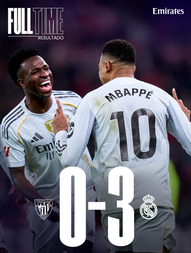 西甲联赛第19轮提前开战,皇家马德里客场挑战毕尔巴鄂竞技。本场比赛姆巴佩大杀四方,不仅打进2粒进球,还送出了1次助攻,靠着他独造3球的神勇发挥,皇家马德里3-0客场大胜毕尔巴鄂竞技。