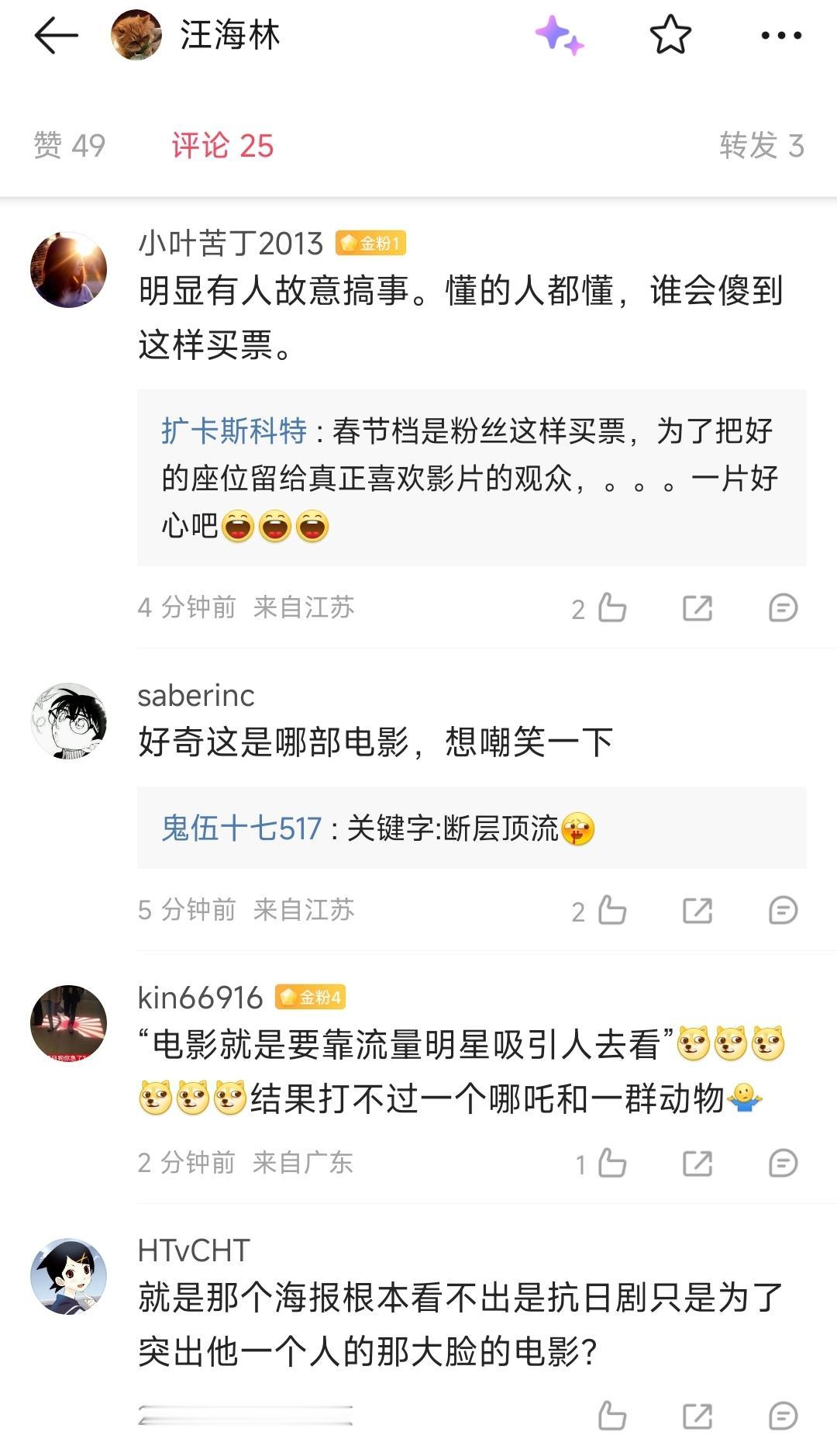 粉丝们为了偶像哥哥也是操碎了心。 编剧汪海林分享了一张电影院座位截图,上面消费者买票的情况太个性了。 正常人买票看电影的时候,都是选择中间的位置,视野好,观影体验舒服。 但这张电影院座位截图,上面居然周围最垃圾、最没人买的位置全被包圆了,反而是中间最好的位置空出来了。 显然,这肯定不是正常情况。评论区的网友猜测,这是粉丝为了哥哥的票房成绩,故意这么操作,买票不去看,只为票房好看,但是为了不影响那些真正想看电影的路人,所以才出此下策,把好位置留给路人,把不好的位置包圆。 但问题是粉丝这么做图什么呀?你要真想给哥哥送钱,你们集体给哥哥捐款多好。 何苦这么倒手呢?