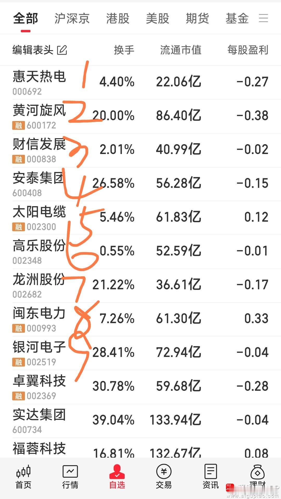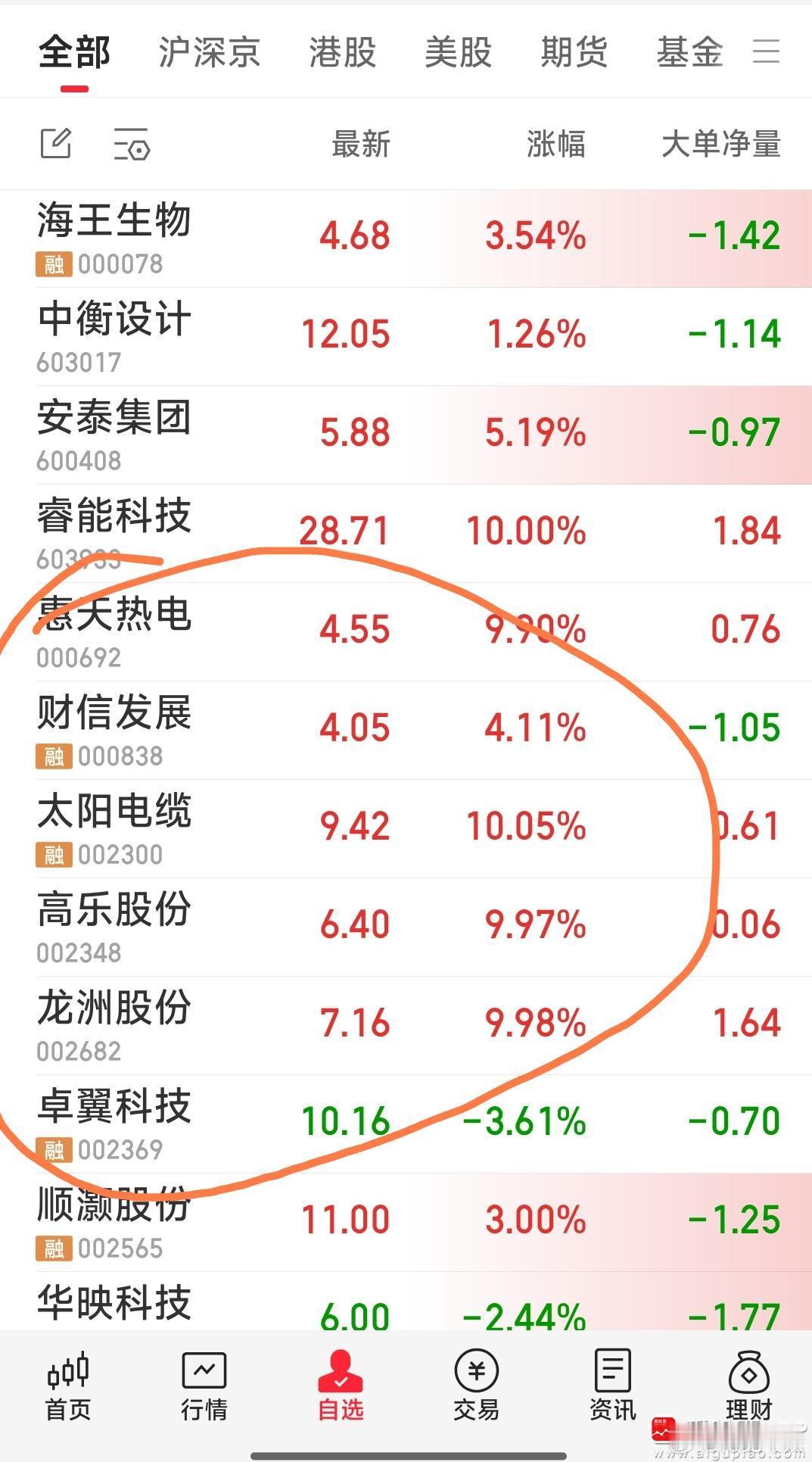【大换手】今天关注了惠天热电,财信发展,太阳电缆,高乐股份,龙洲股份。原票仅留下卓翼科技。炒股太难了,弱了就坚决走,只关注强势票。