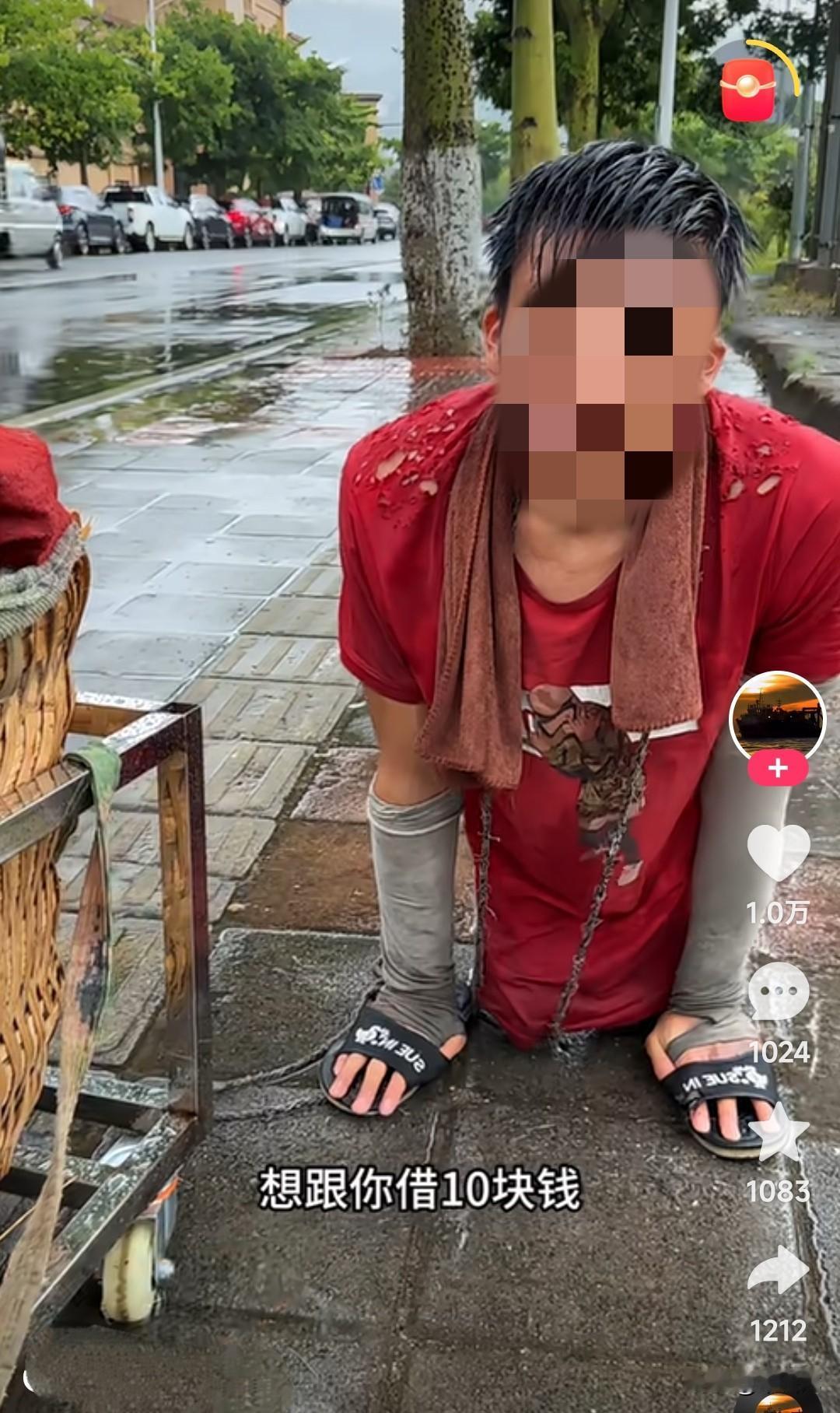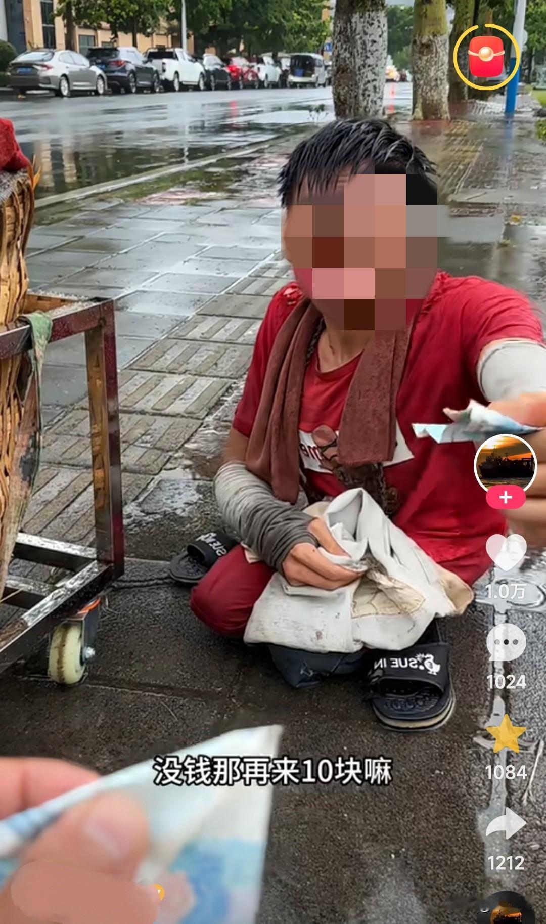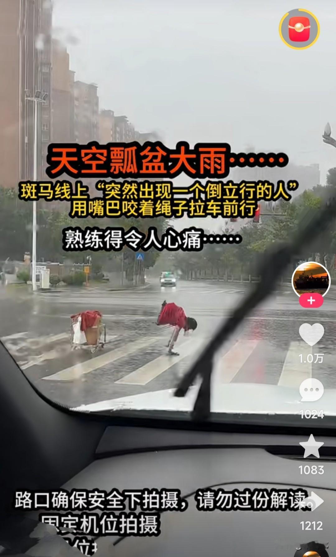 网友等待红灯时,看到一个没有双脚,双手倒立支撑着行走的男子,用嘴巴咬着绳子,拉着一辆小车走过斑马线。 当时下着小雨,男子没有打伞,当然,他也不可能打伞,全身都被浇透了。但男子并不在意,他熟练地咬着绳子,拉着小车走过斑马线。 显然,他是准备拉着货物去摆摊。 看着他为了生活努力奋斗的样子,网友深受感动,想着能不能为他做点什么。 网友将车停靠在路边,从后面追上男子:“兄弟,等一下,你需不需要帮忙?” “不需要。” 男子转头欲走,网友又叫住了他:“等一下,我想请你帮个忙,行不行?” “你要我帮你做什么?” “我刚才在那边吃了个面,但我出门的时候走得太急,钱包忘记带了。你能否借我10块钱,我回酒店取了就来还你。” “看你不像是没有钱的样子啊?”男子有点怀疑。 “是这样的,我是来这边旅游的,钱包忘在酒店里了。” “是来旅游的啊,那行,我借你10块钱。” 男子从车上拿出一个小包,从里面拿出10元递给网友。 “谢谢,谢谢,我待会拿了就来还你。” “你怎么回酒店呀,你又没装着钱,我再拿10元钱给你打车吧。” 男子又从包里掏出一张10元的票面递给网友。 网友不忍心再装下去了:“不用不用,我是跟你开玩笑的,我在那边就注意到你了,我跟过来,就是问问你需不需要帮忙?” 网友注意到男子的推车上拉着满满一车青芒,足有七、八十公斤。 网友将青芒全部买了下来,又邀请他一起去吃了顿快餐。 这段视频在网上引起了热议,有人说,这明显就是摆拍,年轻人哪里还有带现金的,都用手机支付了,网友这样做,明显就是为了赚取流量。 这种可能也许存在,但双脚残疾,为了生活努力奋斗的男子,确实值得我们感动和点赞。 就算是摆拍,网友也确确实实帮到了他,这点应该不假。 男子虽然身残但志不残,而且心地善良,有一颗高贵的灵魂。 每一个遭受苦难,但依然勇敢面对生活的人,都值得被世界温柔以待,希望男子一切都会好起来。 网络素材,如果存在侵权,请联系删除。