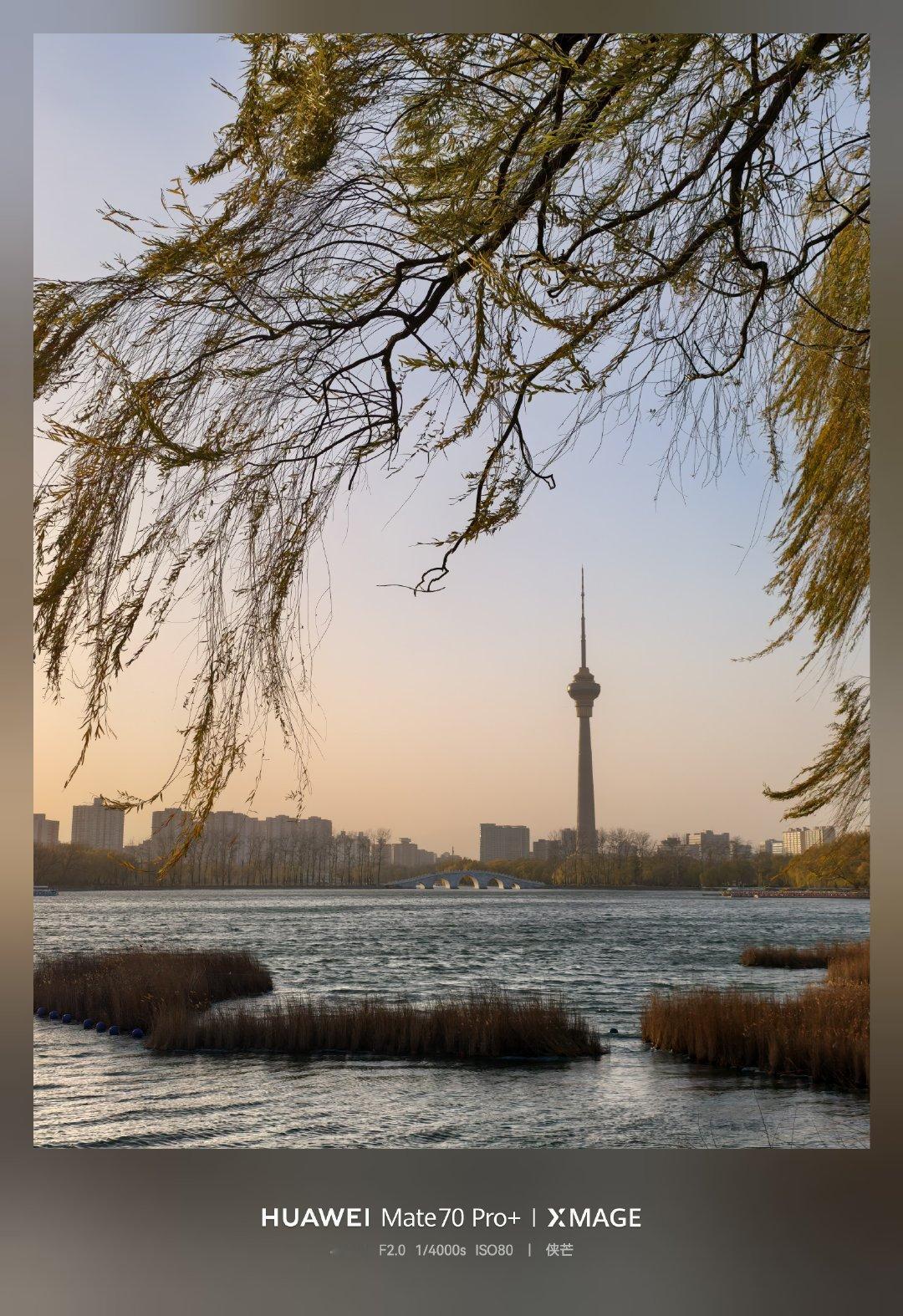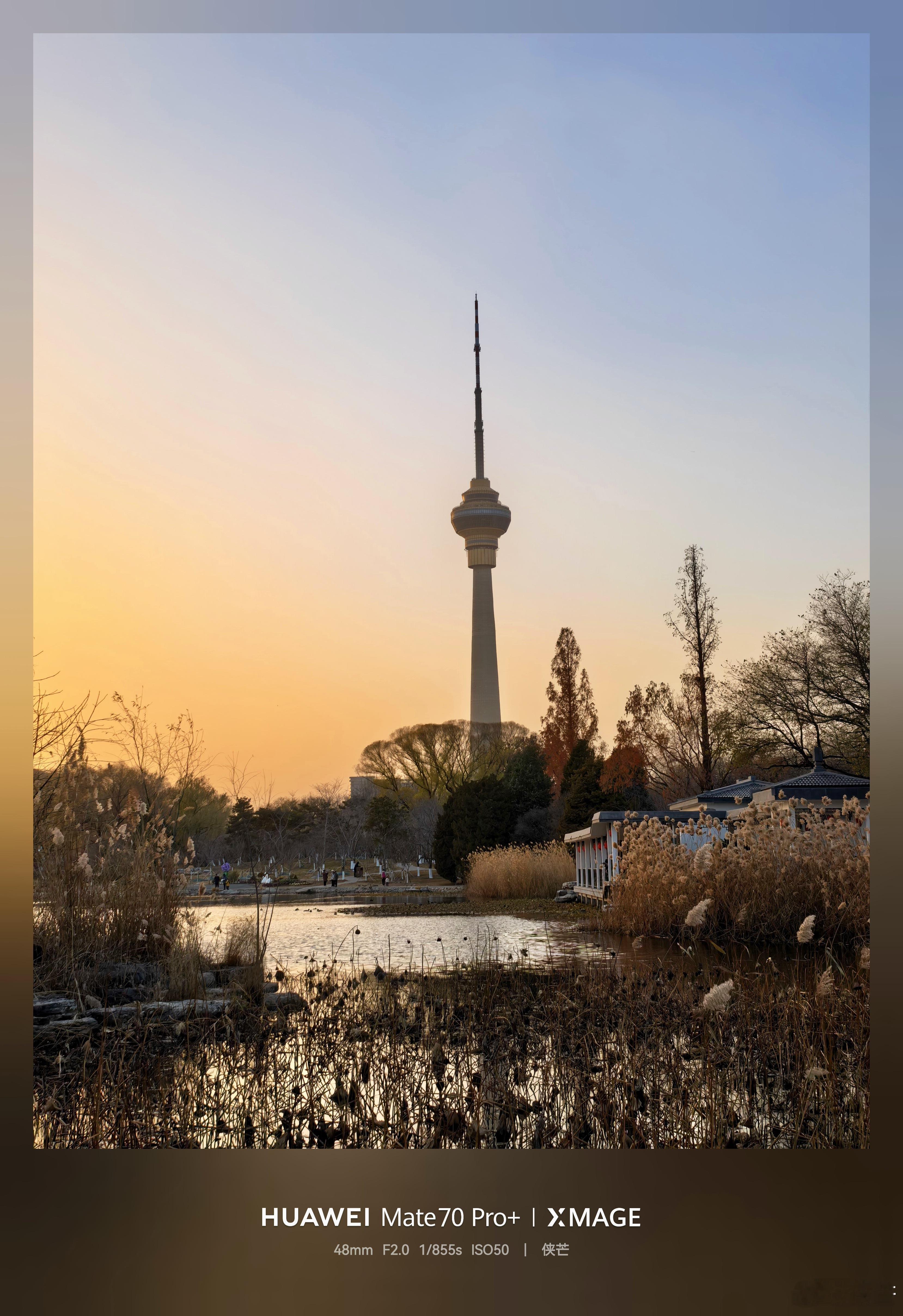 〖夕照玉渊潭,鸿蒙映风时〗 冬日的夕阳缓缓沉落,玉渊潭公园披上一层鎏金薄纱。高耸的电视塔在余晖中勾勒出挺拔剪影,横卧湖面的拱桥如虹饮涧,与金黄的杨柳共绘一幅静谧长卷。湖面波光潋滟,水鸟翩跹掠过,翅尖挑起碎金点点;廊下老人闲坐晒阳,笑语轻漾,或缓步树影之间,尽享晚晴温煦。此刻,鸿蒙6加持的红枫影像悄然定格——光影层次细腻铺展,暖色自然流淌,无需调焦,不惧逆光,将这冬日独有的浪漫温柔封存。一瞬即永恒,万象入画来。北京你好 摄影