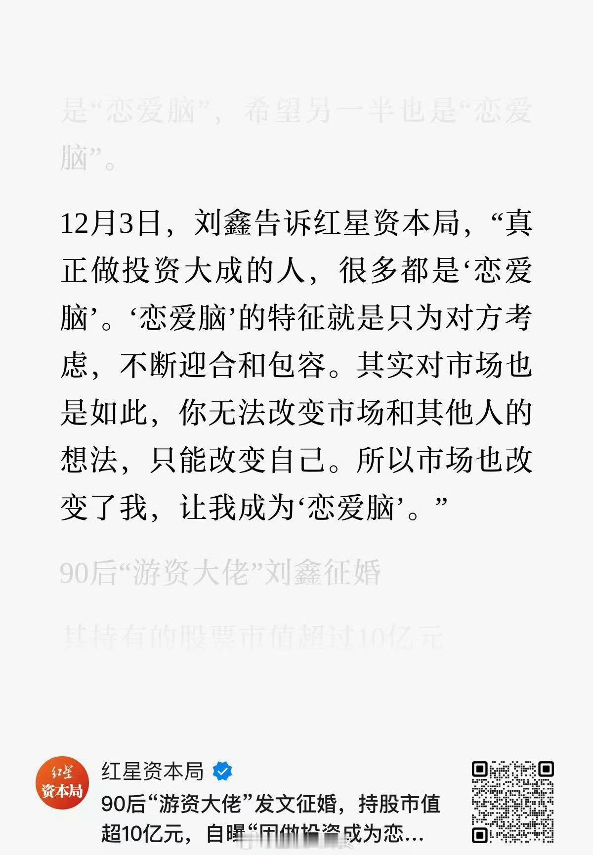90后“游资大佬”发文征婚,持股市值超10亿元,认为“真正做投资大成的人成很多是恋爱脑”90后游资大佬征婚自称恋爱脑