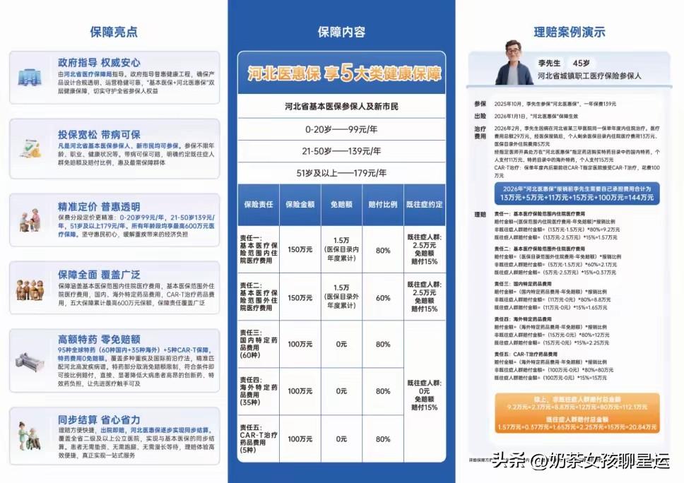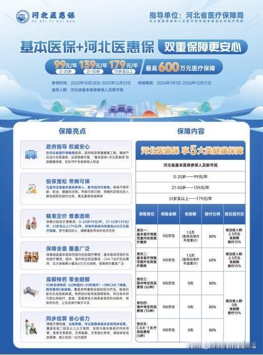 可喜可贺,河北这次又有10个市县评上了全国文明城市,创了历史新高,这不就是实实在在的幸福嘛!说到幸福,我觉得给家人一份安心,才是最大的幸福,尤其是今年冀惠保全新升级为河北医惠保,我第一时间就给我家顶梁柱安排上了。毕竟,这可不是普通的保险,是省医保局亲自指导的,官方背书,靠谱! 要说医惠保真让我心动,它不挑人,不管你多大年纪,做什么工作,身体怎么样,只要有河北的医保就能上。这份包容性,真是暖到心坎里了,我给我爱人投保,就是图个踏实,万一有个头疼脑热,咱心里有底,不至于手忙脚乱。更贴心的是,它还送18项健康服务,平时能拿体检折扣,真有事了还有专家门诊绿色通道,在咱们河北的医院出院时,保险费直接就结算了,连自己跑腿报销的麻烦都省了。 关键河北医惠保还升级了,它特别懂咱们老百姓的心思,知道真正要命的是医保报不了的那些自费药、进口药。现在这部分费用最高能报60%,一下子就给家庭减轻了大包袱。一年600万的保额,住院费、特效药,连最前沿的CAR-T治疗都管,这保障杠杠的!它里面有95种国内外特效药,一分钱免赔额都没有,直接就能报80%。意味着真到了关键时刻,咱能用上最好的药,不用再为钱发愁,而且去外地看病也方便,全国大医院都能用。 说实话,我觉得特别值,一年就一顿饭钱,换来一整年的安心。参保到12月31号就截止了,保障明年一整年。给爱人、给爸妈、给孩子都安排上,这才是咱们小家庭最稳的幸福!