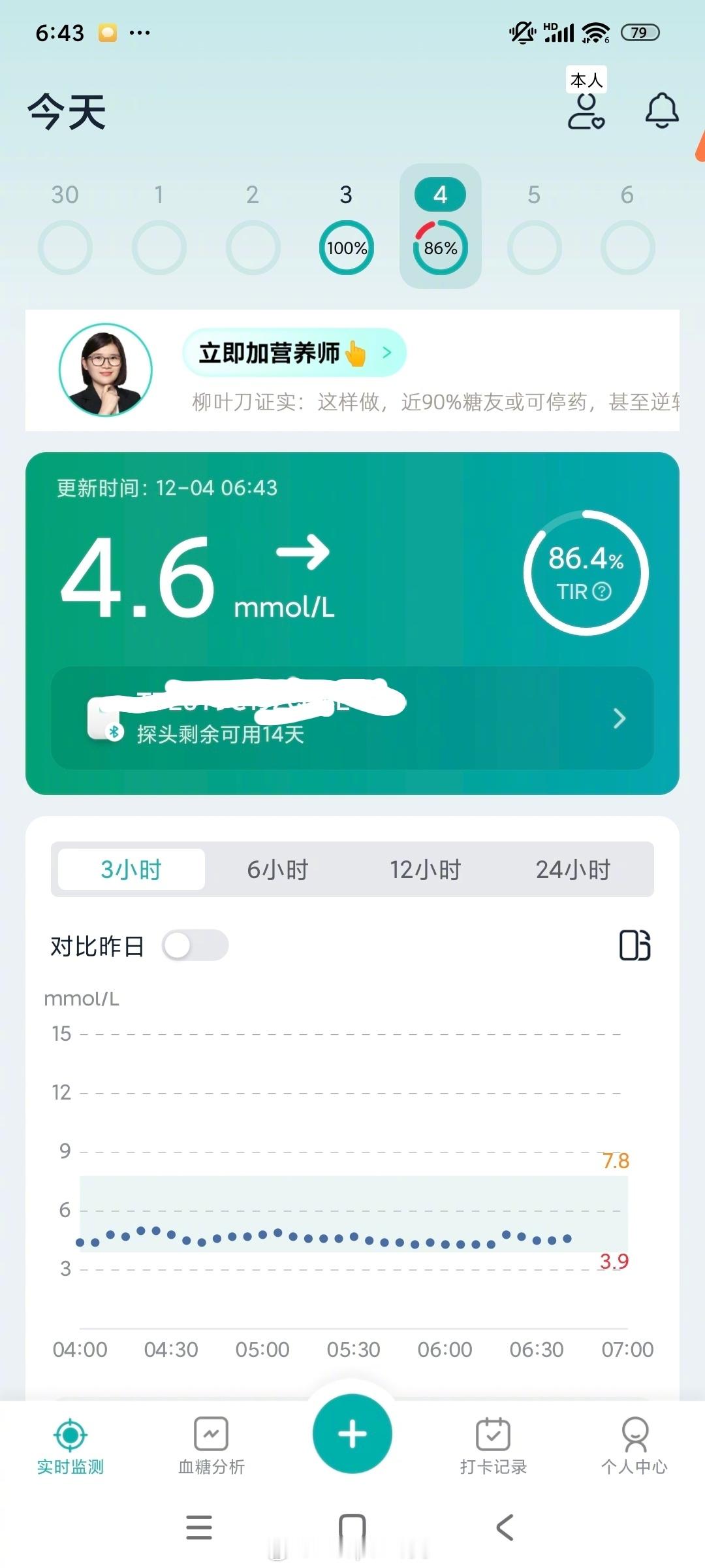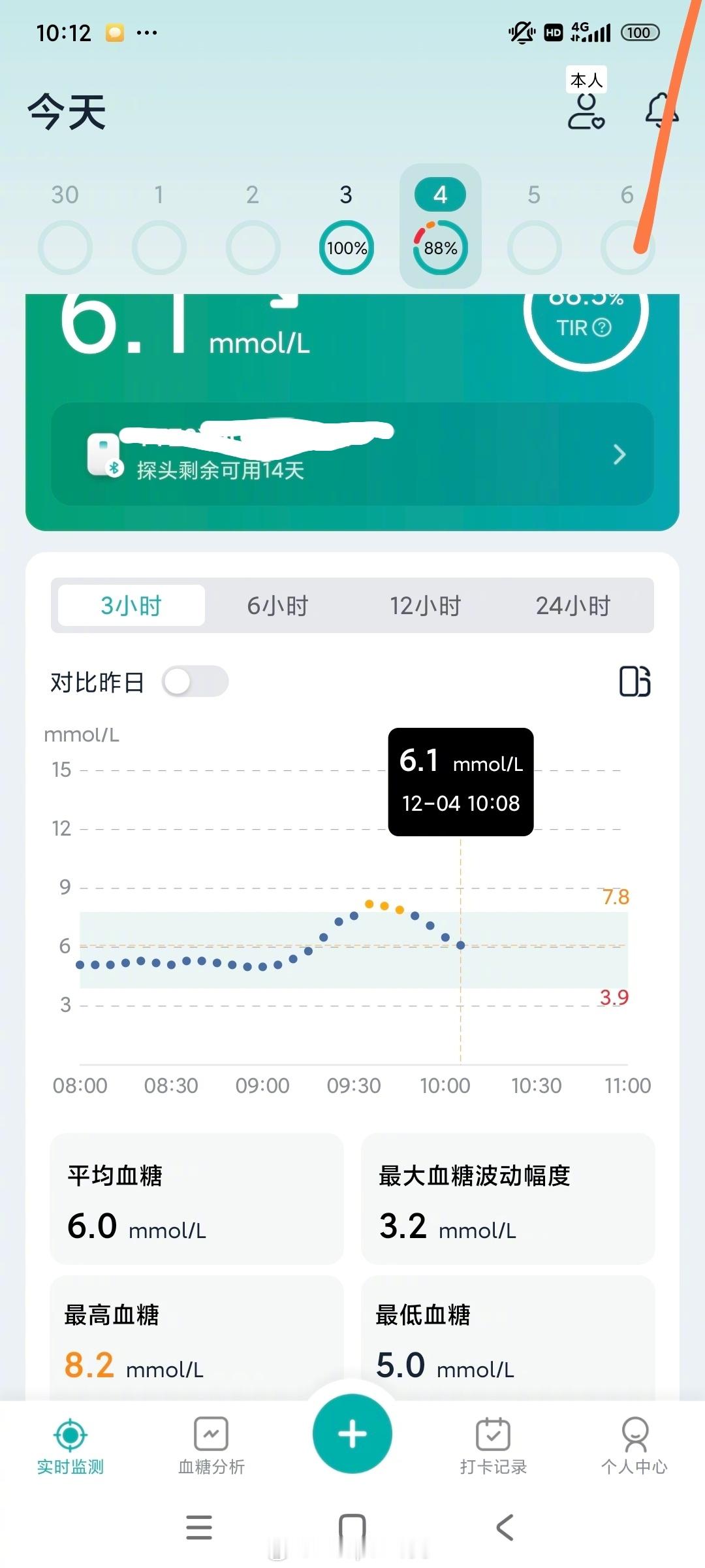 兵器影像半月前的一个饭局,口腔医院的大夫向大家推介了他正在佩戴的14天血糖检测新装备——硅基轻享葡萄糖监控套装,感觉这正是我目前想要的装备啊。人到中年,管住嘴的同时,还需要知道具体到某一个数值到底是如何变化的,尤其是血糖。赶紧下单,但一直忙,折腾到昨天晚上,才打开佩戴。相比医院抽血的检测,硅基轻享操作很简单,按照说明书一步一步,10分钟内就可以佩戴到位。经过1小时的初始化,手机APP就开始显示你的实时血糖数据了。睡前,大概在6.1,深度睡眠后基本保持在4.1。早上起来后,数据随着人的活动,逐渐上升,餐后半小时达到8.1,感觉超过了7.8的红线。但随后数据又降到了6左右。今天第一天,持续看看我两顿正餐后的数据是不是超标吧。之后的14天,我也会继续更新,看看有没有大的变化。作为一个肥宅快乐水爱好者,我也想看看喝完饮料后的数据变化,这个也将作为下一步是不是正式戒断碳酸的参考。拭目以待吧各位对了,这个佩戴是14天一个周期,之后继续佩戴换装。