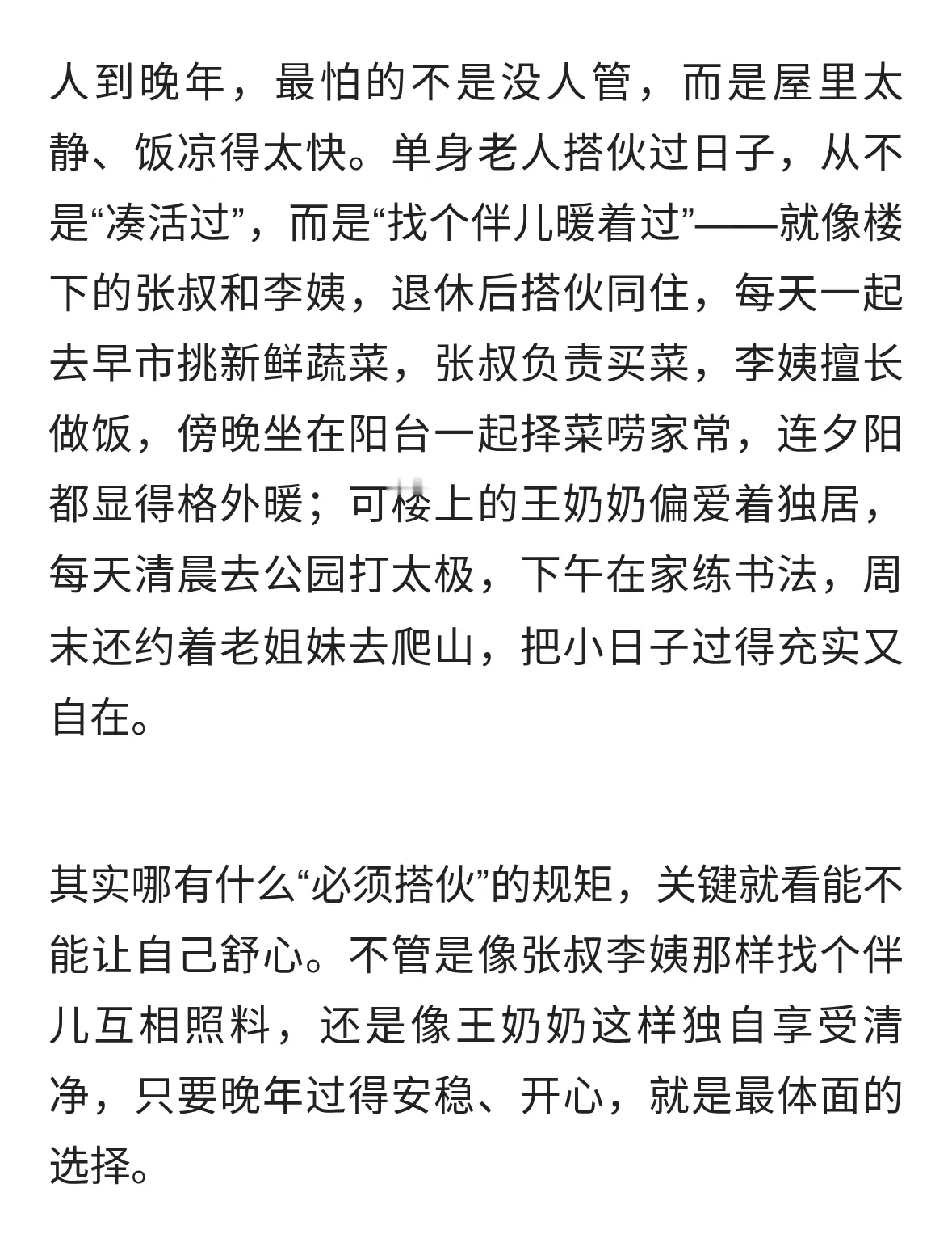 单身老年人的生活,“是找个伴搭伙过日子,还是孤独终老”