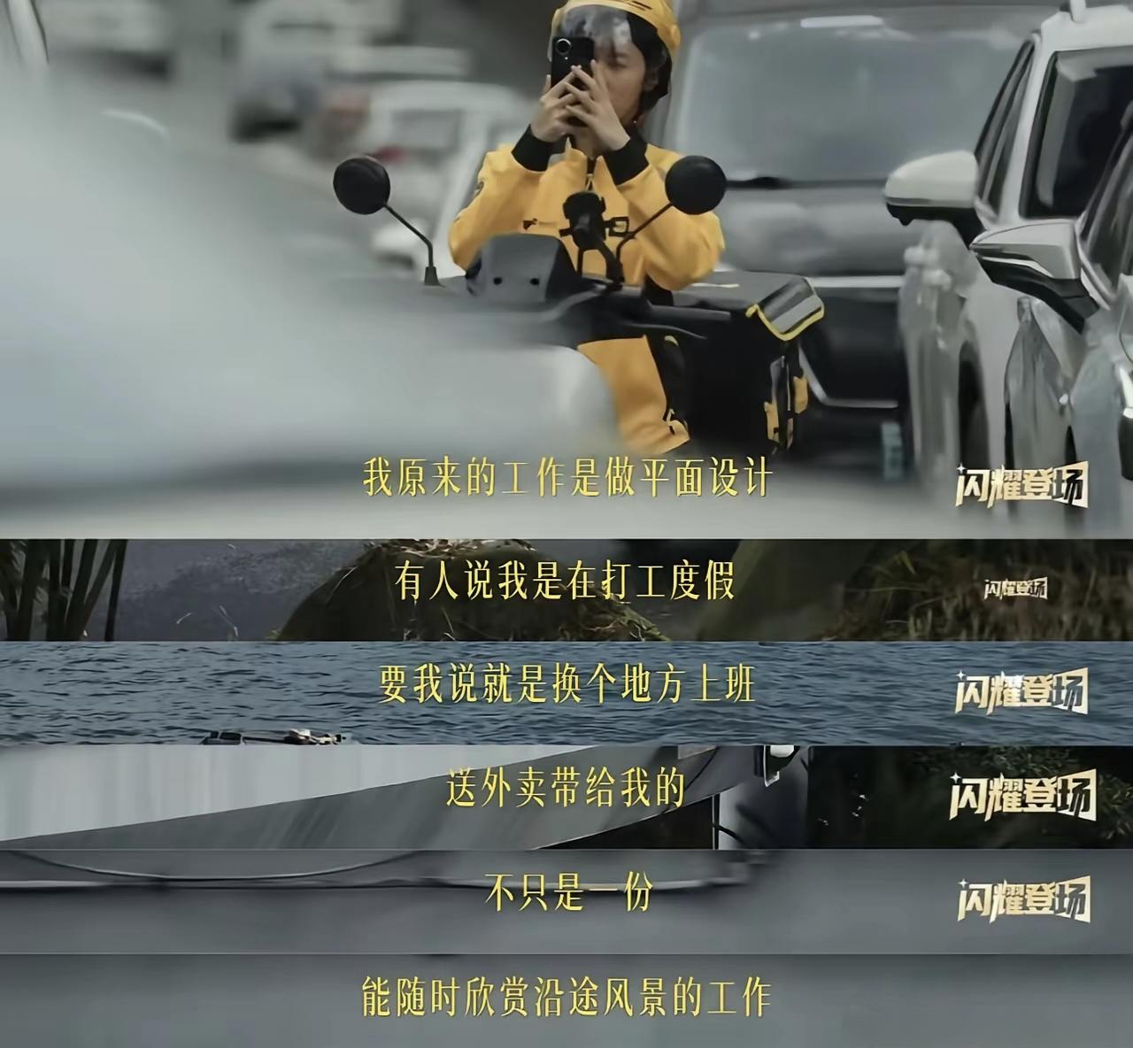 央视那条美团外卖员宣传片大家看了吗?这哪是拍外卖员啊,分明是给“底层苦差”开了十级美颜滤镜! 干过外卖谁不知道?夏天头盔里能闷出一脑袋汗,后背晒得脱皮是常事;冬天手套冻得硬邦邦,捏车把都得咬着牙。更别提那套催命算法,超时一秒就扣钱,取餐送餐全是小跑,连喝口水都得算着时间,哪来的闲心“沿途赏景”“给路人拍照”? 我每天出门都能撞见外卖小哥,个个都是“争分夺秒模式”:取餐时扒拉手机核对地址,送餐时电动车拧到最快,停下车也是扯着嗓子喊“您的外卖到了”,哪有半分宣传片里的“小资松弛感”?他们连坐下来吃口热饭都难,最多在车座上啃口凉面包,这才是真实现状。 把风里来雨里去的辛酸,包装成“岁月静好的打工度假”,这不是记录生活,是拿劳动者的辛苦编童话。我没见过“神仙外卖员”,只见过为了几块钱配送费,在大街小巷拼命赶时间的普通人——别再给底层苦活儿加滤镜了,尊重现实比什么都强。