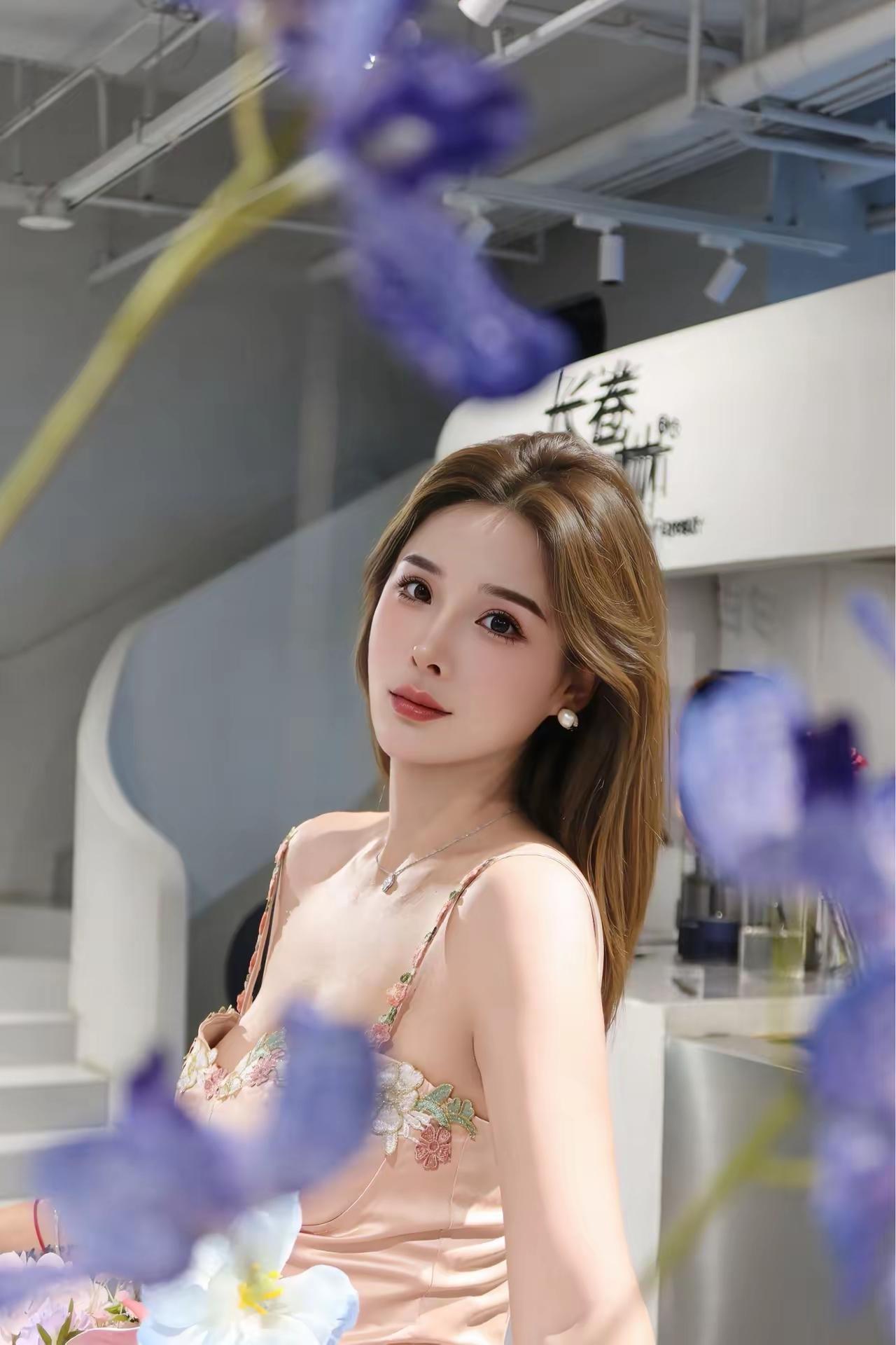 优雅花艺背景下的迷人穿搭,尽显女性魅力!🌸💃