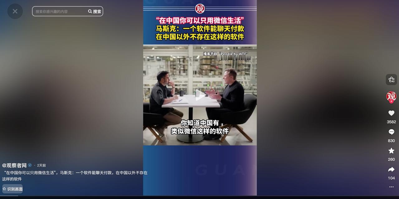 近日,马斯克接受采访时,又一次聊起了微信,马斯克表示,中国用户的生活高度依赖微信。在中国你可以只用微信生活,该应用完美融合了信息交换与资金流转,在中国以外不存在这样的软件。 近日科技圈的焦点人物马斯克又上了热搜,不过这次不是因为特斯拉的新车,也不是 SpaceX 的航天计划,而是他在《WTF 人物访谈》播客里又一次聊起了大洋彼岸的微信,这番言论还在圈内引发了不少讨论。 熟悉马斯克的人都知道,他对微信的关注早就不是一两天的事了,但这次采访里,他对这款中国应用的认可还是让人印象深刻,他直言中国用户的生活已经高度依赖微信,在中国甚至可以只靠这一款应用过完整的日常生活,它把信息交换和资金流转完美融合到了一起,这样的软件在海外市场根本找不到。 说起来马斯克对微信的执念早就超出了单纯的商业观察范畴,更像是在为自己旗下的 X 平台找一个明确的进化方向,这些年他没少在公开场合夸赞微信,只是这次在访谈里说得更直白,也更具体。 在他看来微信最厉害的地方就是把大家日常需要的核心功能都拧到了一块儿,不用在多个软件之间来回切换,这种体验是硅谷一众科技公司至今都没做到的,也成了他眼里行业内的 “终极目标”。 马斯克在访谈里特意提到中国用户对微信的依赖程度,这可不是空口白话,而是有实实在在的日常场景支撑的,对于国内 12 亿微信用户来说,这款软件早就成了生活里的 “标配”,就像马斯克说的,从清晨出门买一杯咖啡,掏出手机打开微信扫码付款,到上班间隙和同事用微信传输工作文件、对接工作需求,再到晚上回家躺在沙发上,用微信缴纳水电费、燃气费,甚至是预约第二天去医院的专家门诊,这些事都能在同一个绿色图标里完成,根本不用再去翻找其他 APP。 马斯克之所以对微信的模式如此上心,本质上是想填补海外市场在 “全能应用” 上的空白,在欧美地区,用户的手机屏幕总是被各种功能单一的 APP 占满,想和朋友聊天得打开 WhatsApp 或 Instagram,要转账就得找 PayPal 或 Venmo,出门打车得启动 Uber,点外卖又要切换到 DoorDash,每换一个场景就要切换一次账号,数据也是相互割裂的,这种 “一个需求对应一个 APP” 的使用习惯已经根深蒂固,而马斯克就是想打破这种低效的碎片化体验,让 X 平台也能成为集多种功能于一体的超级生态。 为了实现这个目标,X 平台其实早有动作,今年 1 月就和 Visa 合作布局了数字钱包,还计划在 2025 年底上线支持美元、欧元的跨境支付功能,一步步朝着 “全能应用” 的方向推进,但理想很丰满,现实却有不少阻碍,毕竟技术功能容易复制,可背后的社会逻辑和用户习惯却没那么好搬运。 微信能有如今的规模,离不开中国移动互联网和智能手机同步普及的特殊时期,也得益于手机号直接作为账号的极简登录逻辑,以及政策层面对于公共服务入口的整合支持。 反观欧美市场,严苛的金融监管就是一道绕不开的坎,之前 Meta 想在聊天软件里加支付功能,就曾被欧盟的数据隐私法规重拳限制,更别说让美国用户放弃熟悉的银行 APP,去信任一个社交软件来打理理财业务,这本身就是一场难度极大的信任迁移。 目前 X 平台的进展也略显尴尬,虽然马斯克雄心勃勃地要在年底推出支持多币种的 XPay,还测试了有 500 家品牌入驻的 “X 小店”,但在用户眼里这些功能更像是零散的堆砌,离真正的 “全能应用” 还差得远。 有不少人都觉得,马斯克想把微信的模式搬到海外,却忽略了微信扎根的文化土壤,那些根植于中国人情往来的发红包、抢车票、家族群互动等烟火气,才是让微信真正融入生活的关键,如果剥离了这些 “中国属性”,只生硬地堆砌功能,最终可能只是做出一个空有架子的半成品,而不是像微信那样能真正嵌入用户日常的超级应用。 其实说到底,马斯克看中的是微信 “一站式解决生活需求” 的核心逻辑,但不同地区的用户习惯、监管环境和文化氛围差异巨大,想要在海外复刻这种模式,不只是简单的功能叠加就能实现的,这也是他接下来要面对的最大难题。 (信息来源:观察者网)