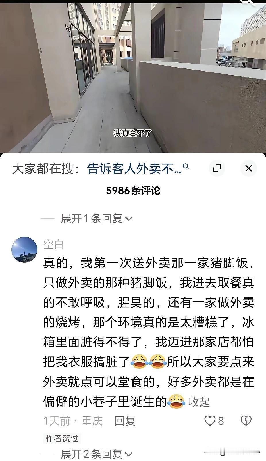 无良商家遇到良心外卖小哥,是一种什么样的体验? 外卖小哥来到一家卖猪脚饭的商户来取餐,刚进到商户后厨,外卖小哥被后厨的景象吓了一跳。 脏、乱、差,还伴随的刺鼻的恶臭,让外卖小哥差点没吐出来。 小哥随手拍了视频,取了餐之后迅速离开了现场。 当外卖小哥把餐送到顾客手里,便提醒顾客,下次换一家点吧,这一家不太好。 顾客遇到了良心的外卖小哥,如果这饭吃下去,不一定能吃出来个什么病! 期待后续的调查结果,希望让这样无良的商家尽快关门! 为勇敢的外卖小哥点赞!外卖小哥 外卖员光荣事件 外卖平台不公 外卖被差评 外卖哥见义勇为 外卖送餐小哥 外卖送餐骑手