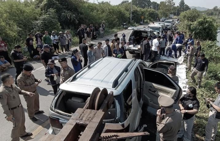该车可能共载有15人,其中8男7女。 25年12月3日,脸书页面“Ratchaburi Newsroom”报道了当天早上(2025年12月3日)发生在泰国叻武里府的令人震惊的事件的紧急消息。在一辆掉入灌溉渠的丰田 Fortuner 车内发现了许多尸体。 事故发生在北寿市Nong Krathum公社Ratsamanchat宝塔后面。 初步检查显示,车内共发现9具尸体。 现场图像分享的初步信息显示,该车可能总共载有15 名外籍工人,其中包括 8 名男性和 7 名女性。其中,据称有6人已逃离现场。不过,这些数字仍需官方确认。 目前,警方和救援人员正在现场紧急取证,检查车况、事故地点并听取附近群众的陈述。 当局尚未确定死因以及失事车内人员的身份和来源。搜寻和调查活动正在紧急进行,以查明这起悲剧的原因。