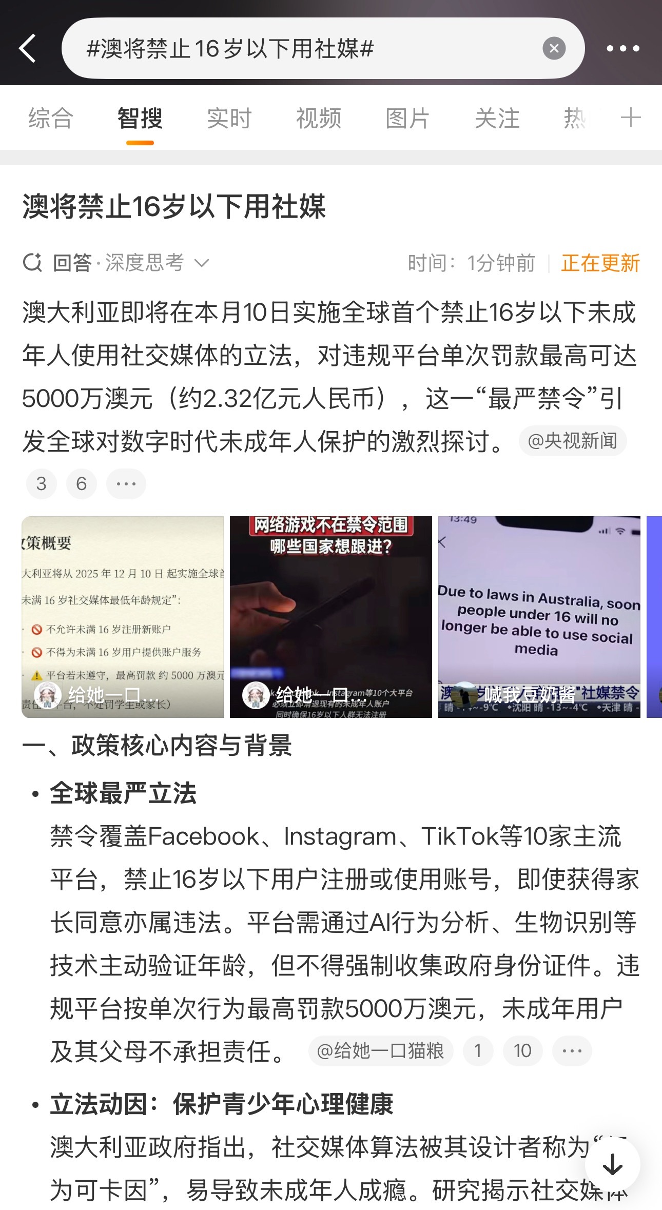 澳将禁止16岁以下用社媒澳大利亚凶猛,严禁所有16岁以下未成年使用社交媒体,违规平台单次最高罚款2.32亿人民币…主要还是西方网络空间乌烟瘴气,根本不做过滤,各种假新闻满天飞,违法违规内容泛滥,弄的现在初中生了都一刀切不准看社媒!