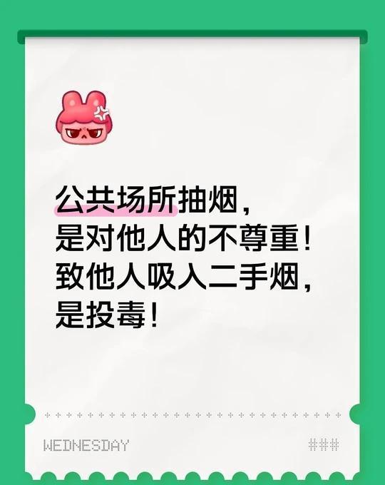公共场所抽烟, 是对他人的不尊重! 致他人吸入二手烟, 是投毒! 二手烟 三手烟 投毒 公共场所禁止吸烟 整治社会不良风气