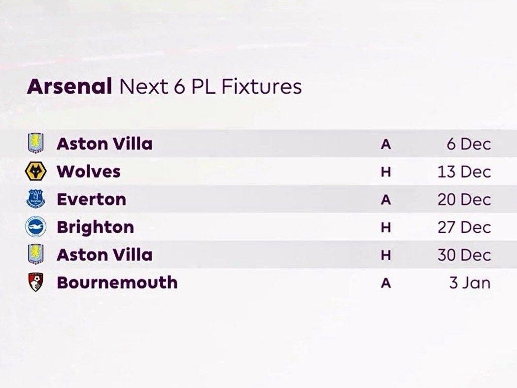阿森纳接下来6场英超比赛对手👇英超联赛 阿森纳