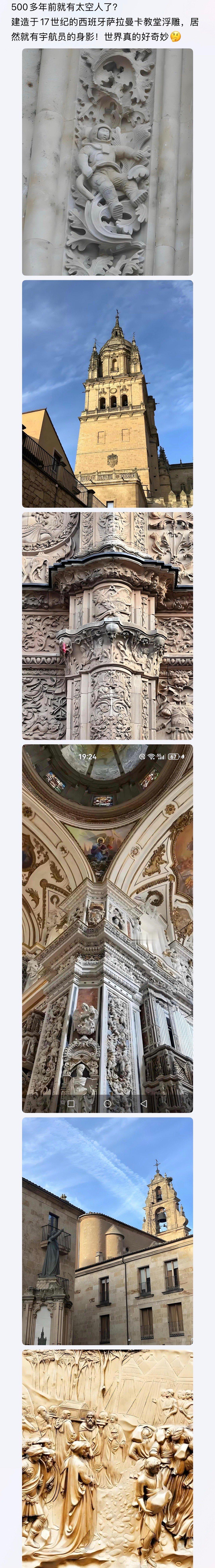 真的好奇怪🤔建造于17世纪的西班牙萨拉曼卡教堂浮雕,居然就有宇航员的身影!中世