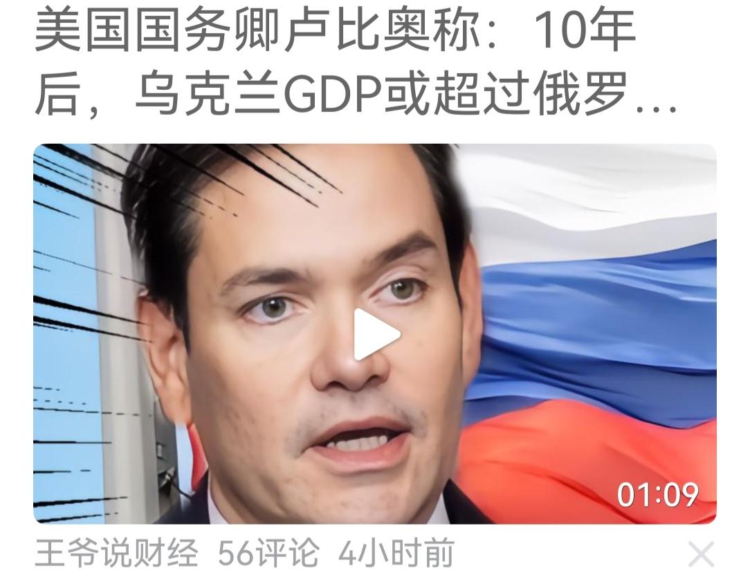 卢比奥说“十年后,乌克兰GDP或超过俄罗斯”。很有可能,俄罗斯是个资源大国,除了卖石油外只有卖军火,但俄乌战争让俄武器现了原形,军火也不好卖了。加之战争后遗症,俄罗斯十年二十年都恢复不了原气,俄罗斯已成欧洲的弃子。而乌克兰在加入欧盟后,人员可在欧盟内自由流动,加之欧盟的扶持,经济很有可能腾飞的,正如东欧国家加入欧盟一样。