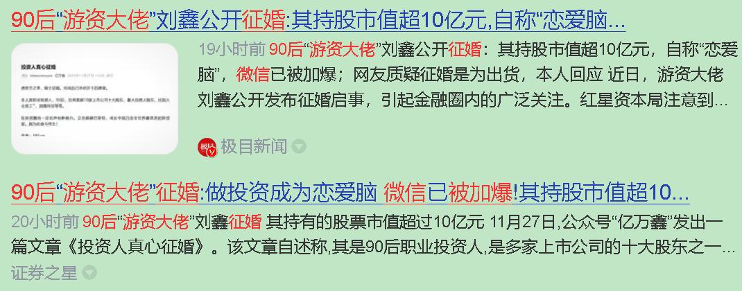 每天几百人想加他微信,就因为一条征婚推送。一个手握十亿的90后,竟说自己是个“恋爱脑”。 这太颠覆了。投资大佬不都冷静算计吗?可他偏不。他说,对市场得像对恋人,你无法改变对方,只能调整自己。这套“投资哲学”,意外戳中了很多人的婚恋痛点。 他的故事带着草根逆袭的光环,征婚方式也直接高效。可质疑随之而来:是不是炒作?他回应,只是真心想找个伴。想想也是,越是顶尖的人,圈子反而越小,孤独是通病。 他把“恋爱脑”重新定义,从任性变成包容与专注。这像一种“价值投资”——不看短期条件,寻找长期默契。他说,选对伴侣,是人生最重要的投资。 这场征婚看似热闹,内核却是个现代寓言。在一切都能被估值的时代,我们还相信纯粹的心动吗?他用行动说:相信。 线上筛选高效,但爱情需要时间沉淀。幸运的是,他已遇到几位可以深入了解的人。你看,再精明的计算,也敌不过两颗真心的碰撞。 或许,我们都该保留一点“恋爱脑”。不是盲目,而是愿意为对的人,放下所有预设。财富会波动,K线会起伏,但那个与你共振的人,才是真正稀缺的标的。 毕竟,算计能赢得利益,却赢不来爱情。网络征婚靠谱吗90后“游资大佬”征婚 微信被加爆