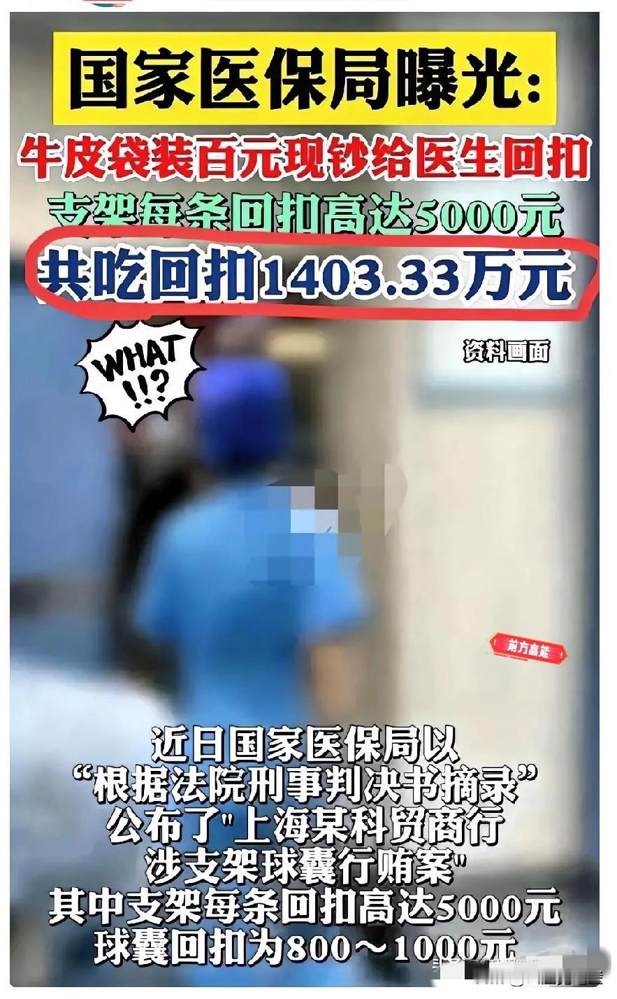 看到这个让我毛骨悚然!上海某科贸商行竟用牛皮纸袋装着百元现钞,七年时间给河北icon某医院送了1400多万,只是为了…… 而是让医生在手术中多用他们的心脏支架和球囊。 因为这两样的回扣太好算了,支架每个回扣5000元,球囊每条回扣800元。 七年时间,商行向医院输送现金回扣1400多万元。 根据判决书,马某控制的商行通过贿赂医院高管和科室主任,铺设在医院的“商业贿赂”网点12个,形成了以医院为“中心”的腐败链条。 这起贿赂案件的曝光,折射的是医疗耗材领域的黑暗,药品和医疗器械回扣贿赂行为由来已久,但如此大额回扣贿赂行为,仍让人震惊。 一般来说,医生推荐高价产品,总有理由,说是国产的、性价比高的,患者只能选择相信。 这下好了,患者知道了真相,心里更加不痛快。 这起案件中,有几个“侥幸心理”破灭的人, 他们都为自己的行为付出了代价,有的人已经身处囚笼,有的人正在等待审判。 这是法律的制裁,也是道德的惩罚。医疗行业是一个良心职业,救死扶伤是医生的职业伦理,然而一些人却把职业伦理抛在了脑后,让贪腐当道,让患者遭罪。 医疗行业必须坚守职业伦理,让贪腐歪风不能影响患者安全。 大家对这事有什么看法呢?评论区聊一聊