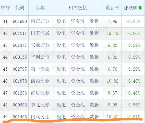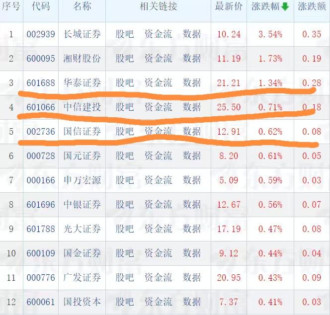 券商股今天走势呈现强者颇强,弱者不弱的总体偏强态势。 何为强者颇强呢?46家券商股(三家券商股重组停牌)有32家收红,三家持平,下跌的券商股仅11家。而且涨幅排行榜前五名里有三家头部券商股上榜。其中华泰证券涨幅1.34%,居所有券商股涨幅排行榜第三名,中信建投涨幅0.71%,居所有券商股涨幅排行榜第四名,国信证券涨幅0.62%,居所有券商股涨幅排行榜第五名。还有申万宏源、广发证券涨幅分别居券商股涨幅排行榜第七名和第十二名。 何为弱者不弱呢?11家下跌的券商股,跌幅最大的国联民生下跌6分钱,跌幅0.57%,跌幅也没有超过1%。 在美联储降息预期升温,重要会议即将召开,券商股回撤幅度不小的背景下,牛市先锋券商股会率先企稳回升吗?