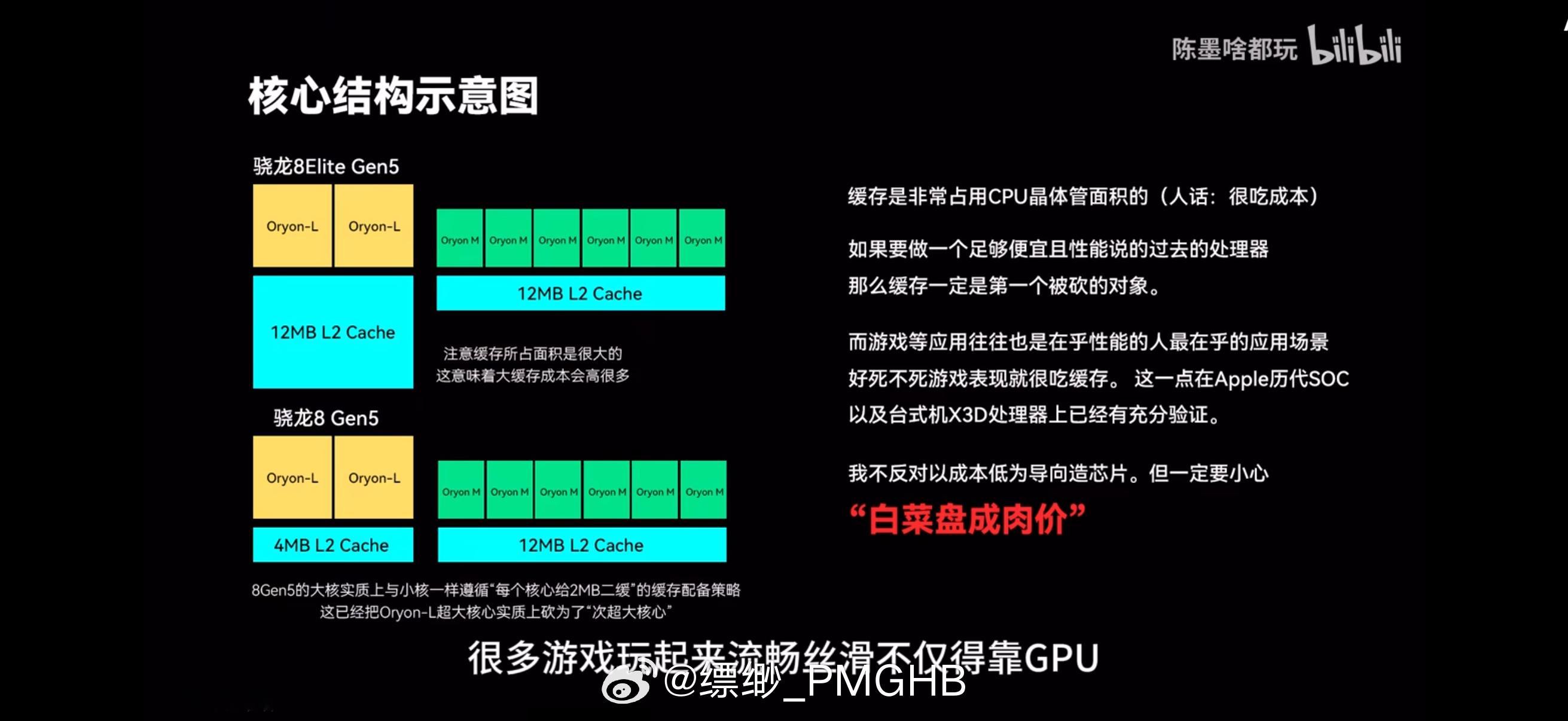 高通现在的产品定位确实越来越抽象了,本来还以为 8 Gen5 对齐的是之前旗舰定位,但仔细看参数才发现缓存砍的有点猛,超大核都砍了 2/3,在目前 GB6 的跑分机制下可能影响比较小,但日常用感知还挺明显的,PPT 和卡价位专用 SoC