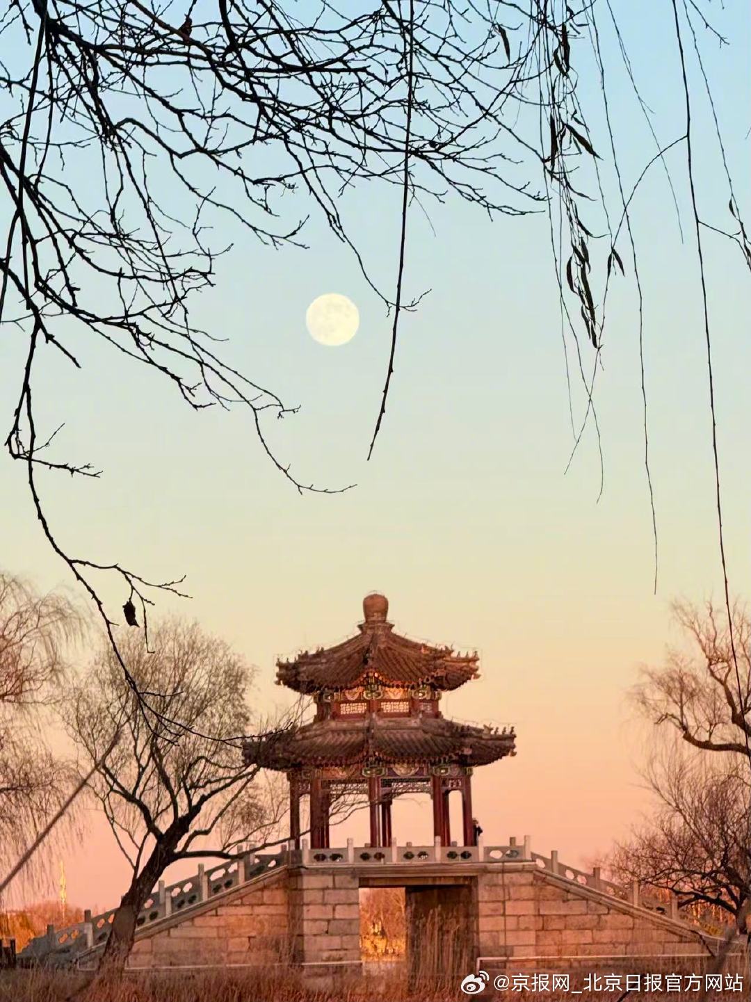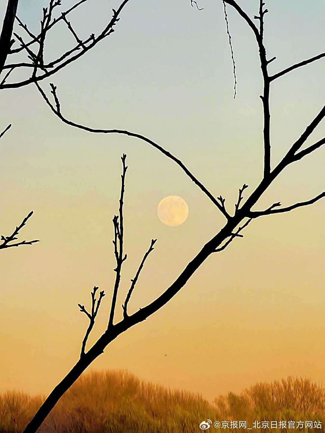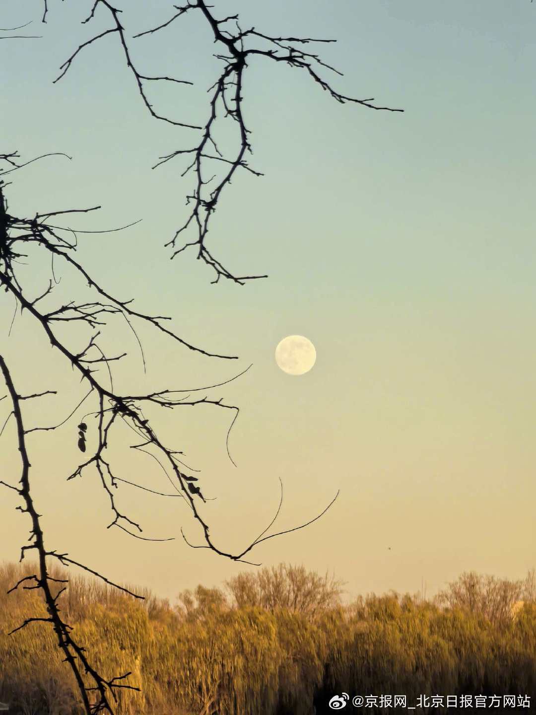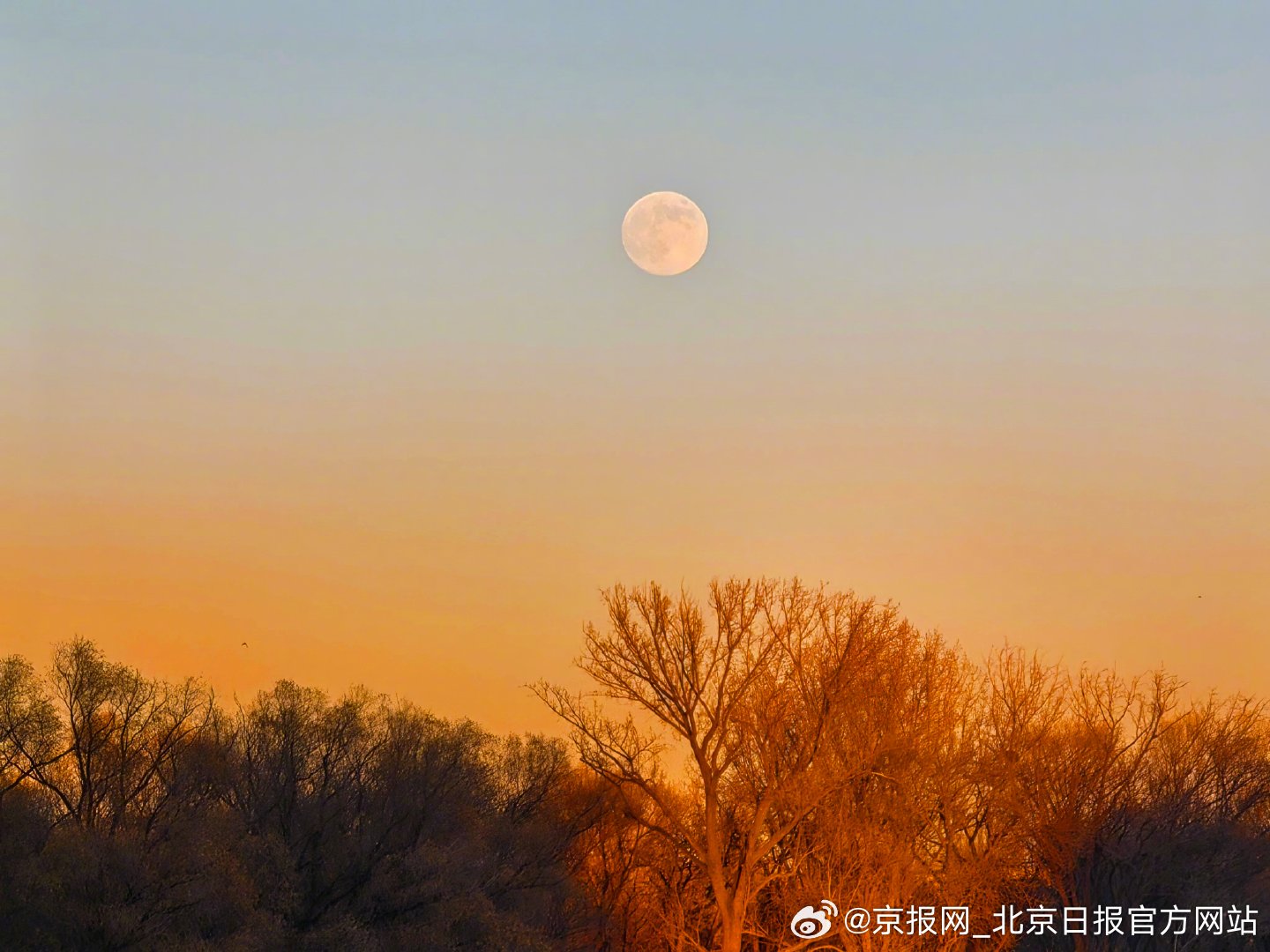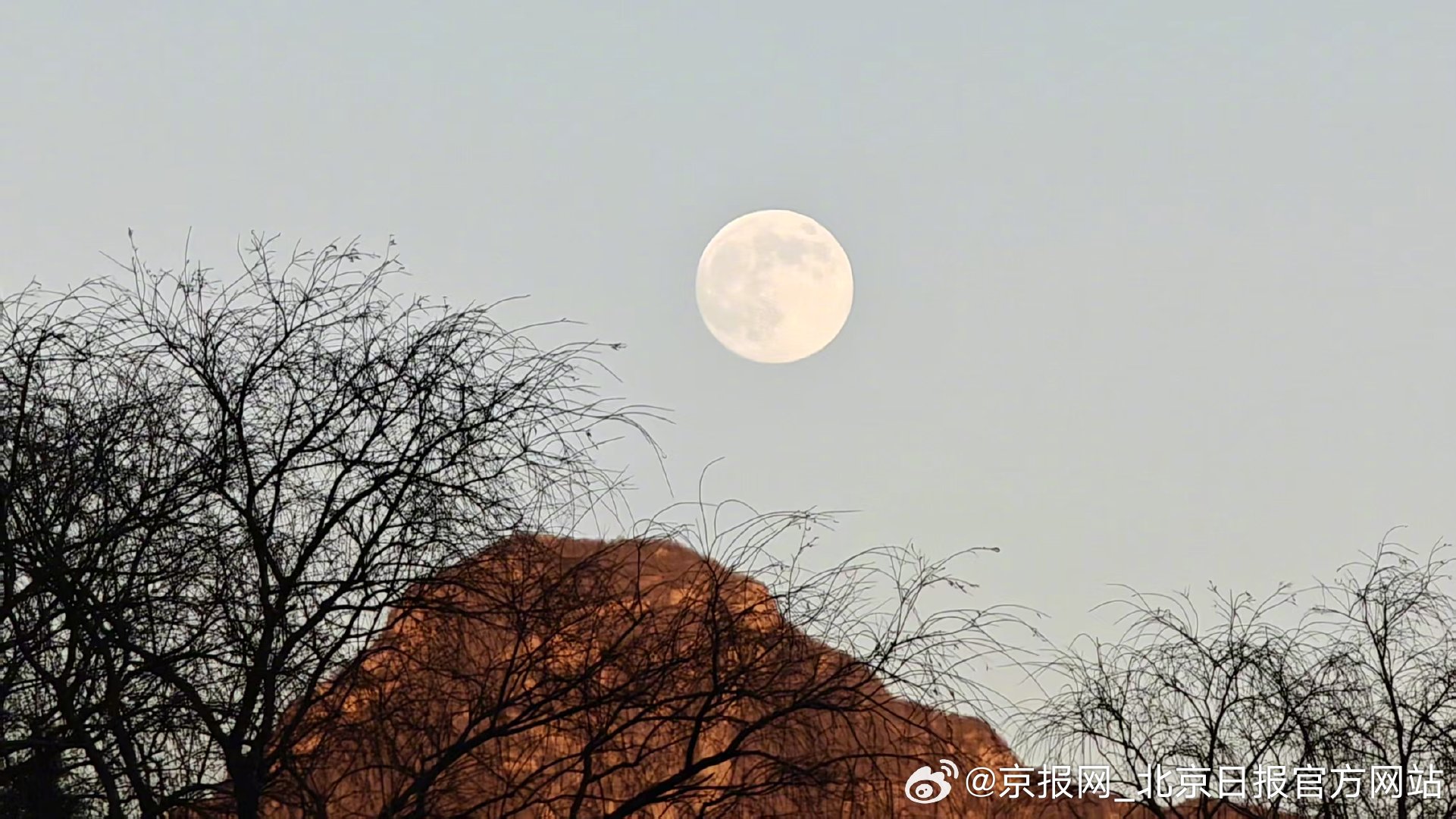 【先睹为快!#北京超级大月亮已上线#】#今天北京真好看# 12月4日傍晚,北京落日未沉,银月已升,#太阳还没下班超级大月亮就来了#,日月同辉映亮街巷。对着这轮圆月许愿,愿所有期盼皆有回响,万事圆满顺遂。#定格北京冬日美好# (作者 姚猛 温红征 阎建庆 黎振平)