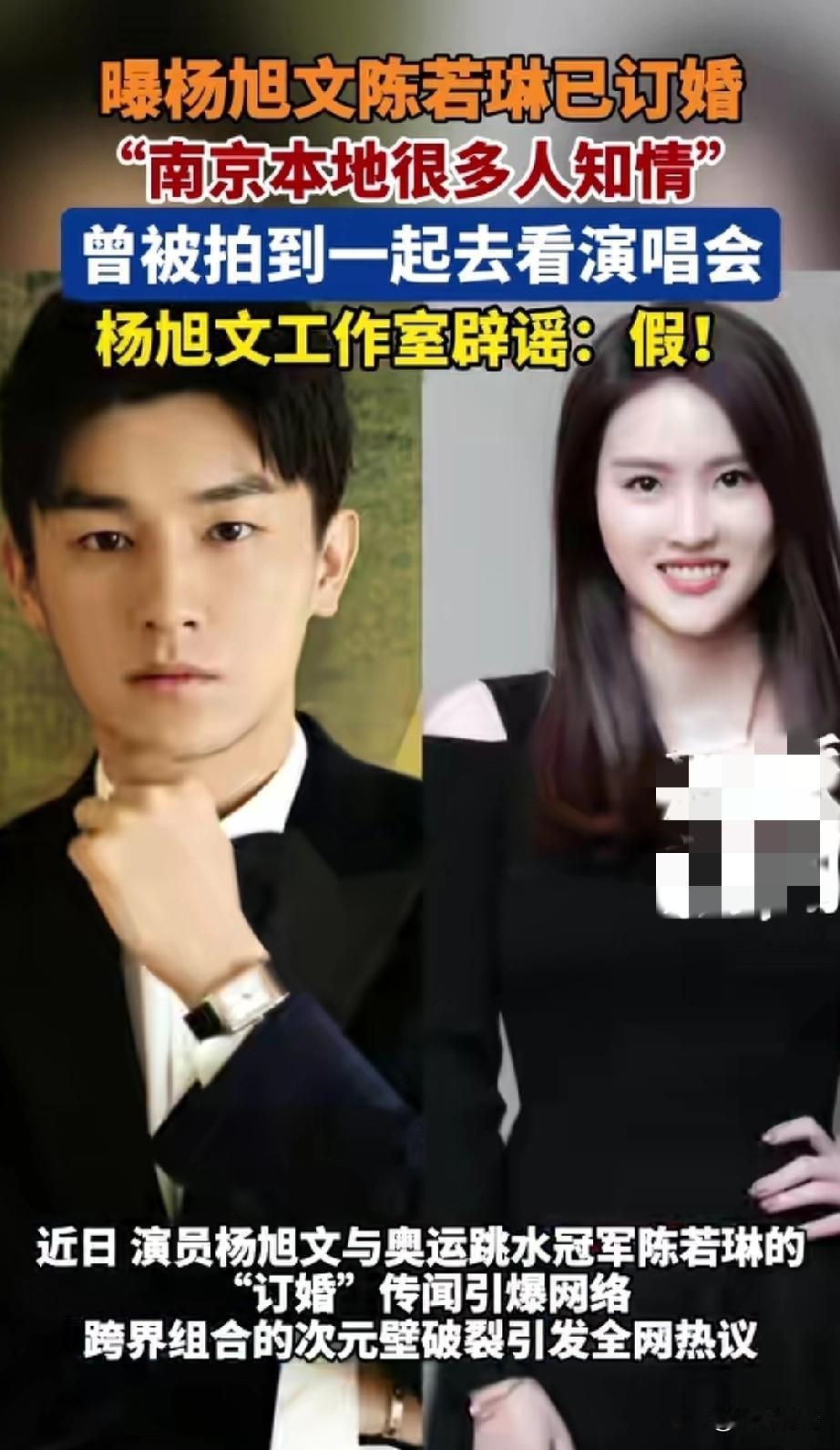 曝杨旭文和陈若琳订婚, 一个是近期比较火的演员, 一个是奥运跳水冠军, 这两个人的跨界之恋, 确实会引起人们的关注, 南京本地人很多人知情, 更有网友拍摄到两人一起去看演唱会, 11月份陈若琳接受采访的时候, 表示自己很享受单身的生活, 并澄清与其他人的绯闻都是朋友关系, 杨旭文工作室和他的粉丝纷纷表示这是假的! 毕竟时间线很冲突, 杨希文最近也是因为卢凌风这个脸色火起来的,唐朝诡事录确实好看, 大家对于这事怎么看? 杨旭文演技 陈若琳蹦极 杨旭文走红毯 陈若琳跳舞