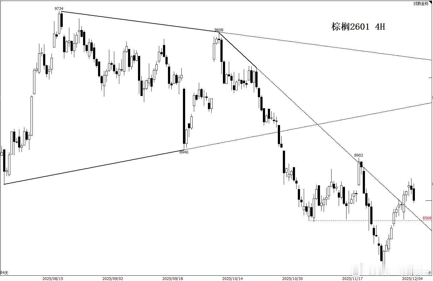棕榈 棕榈一波结束调整恢复升势的可能性不大,关注8630/8570附近支撑,跌破该线可能就是重新走弱的开始。但大周期仍倾向于多头,重申此前观点:原油不大跌的情况下,棕榈就是政策多头品种,低位故事绝对多。期货