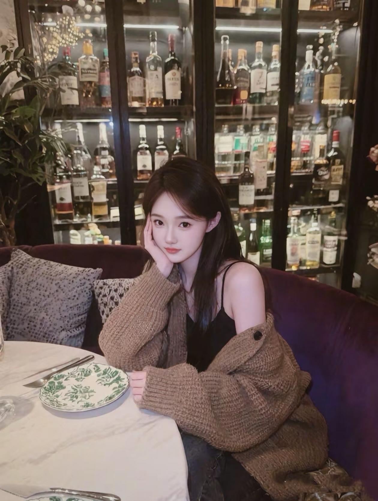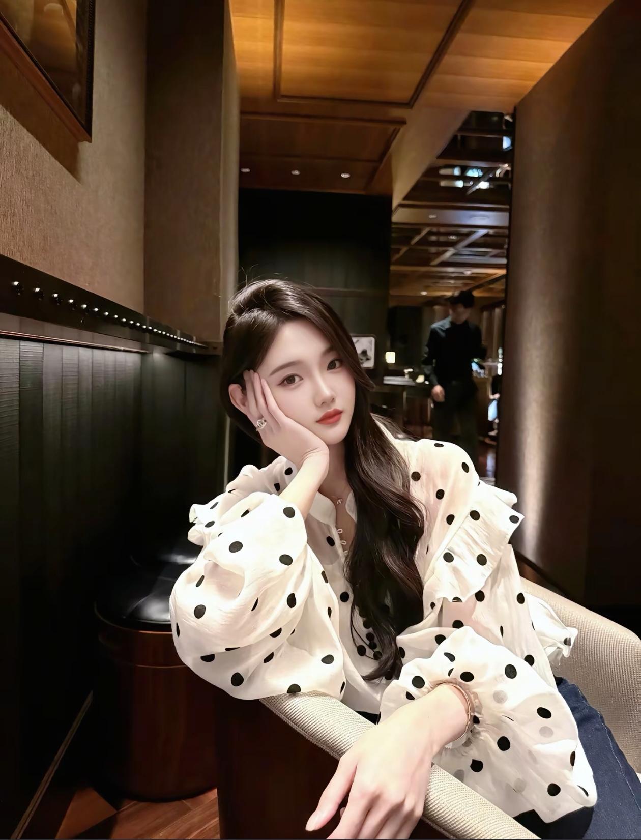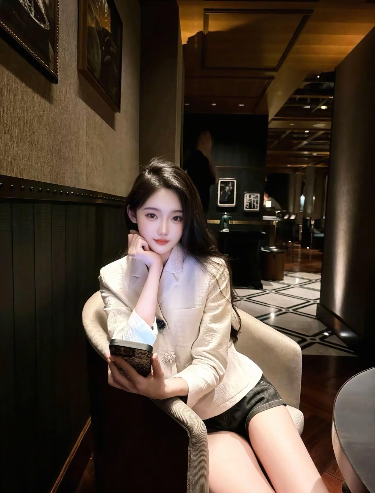 夜晚的宁静时光,优雅地坐在长椅上,享受着属于自己的静谧时刻。