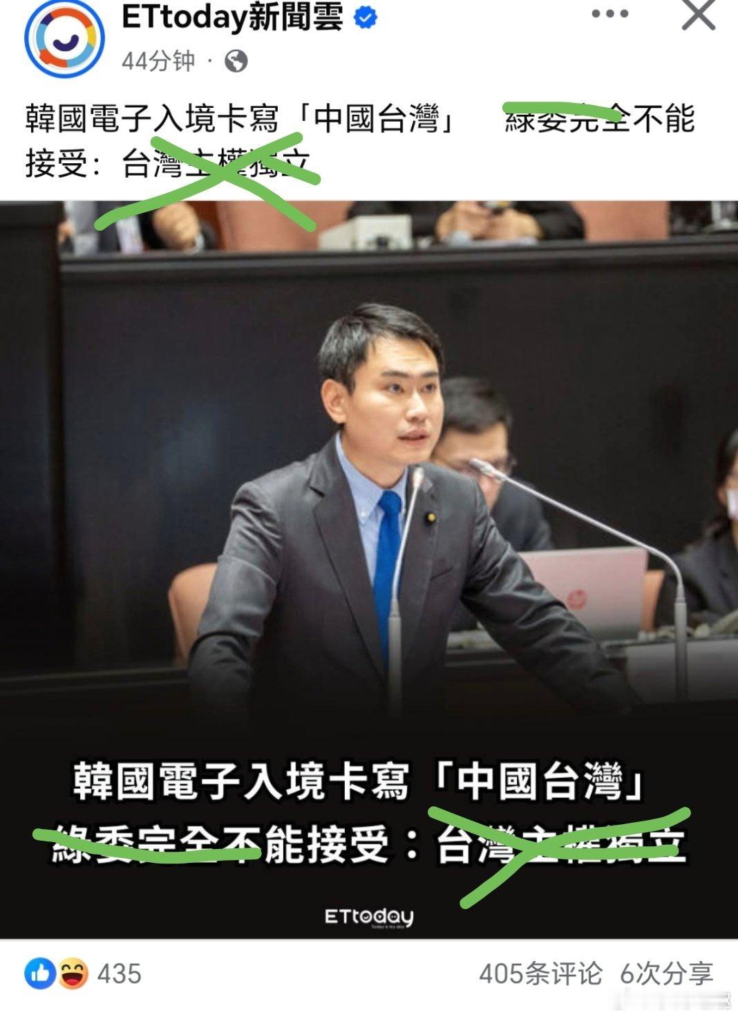 台湾 留言區:真香……韩媒曝台当局要求修改入境卡国籍