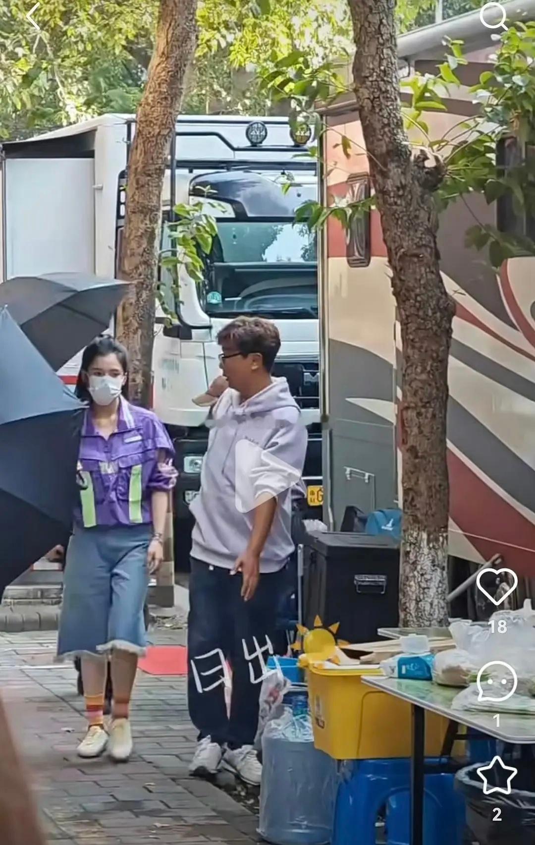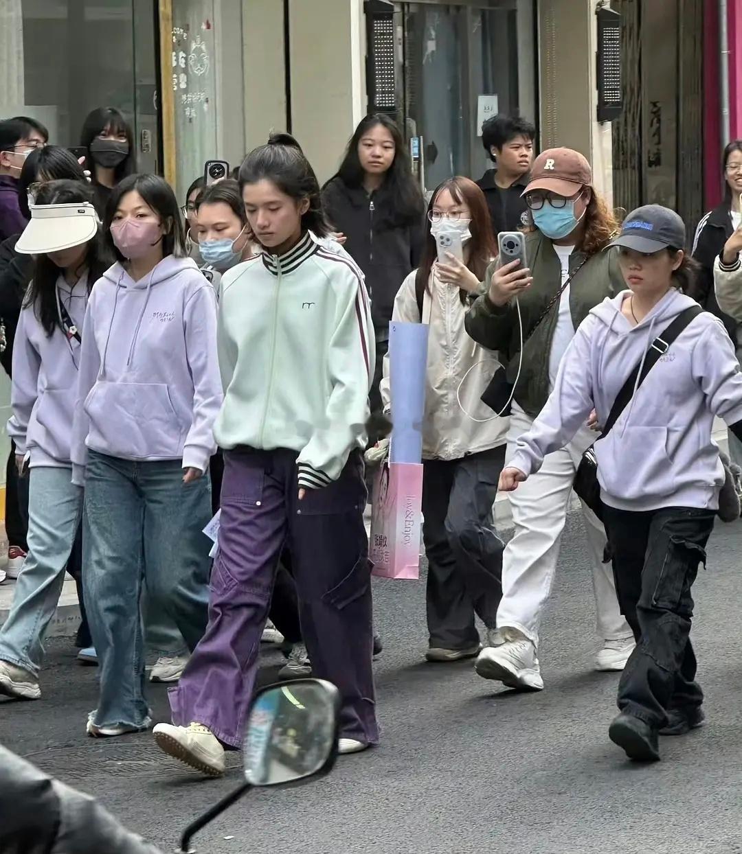 吴艳妮在成都穿着短裤大腿看起来很粗壮,表情自信又张扬